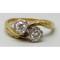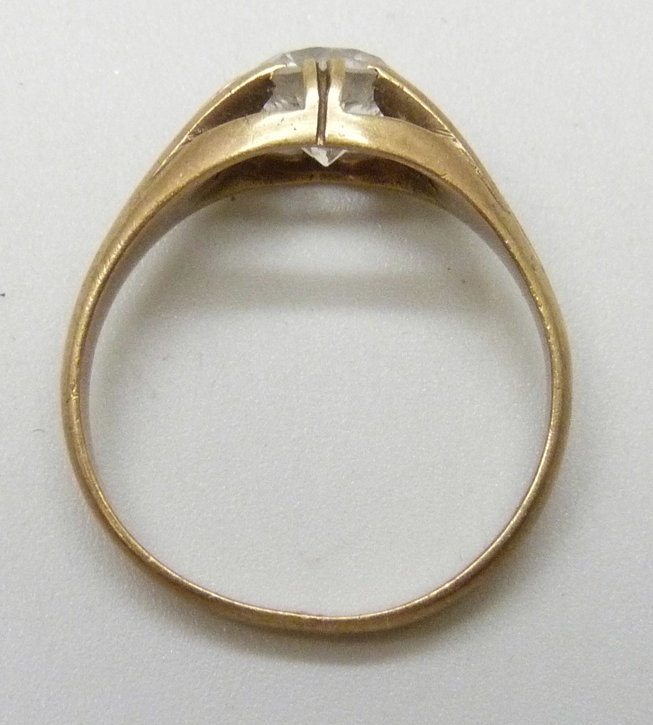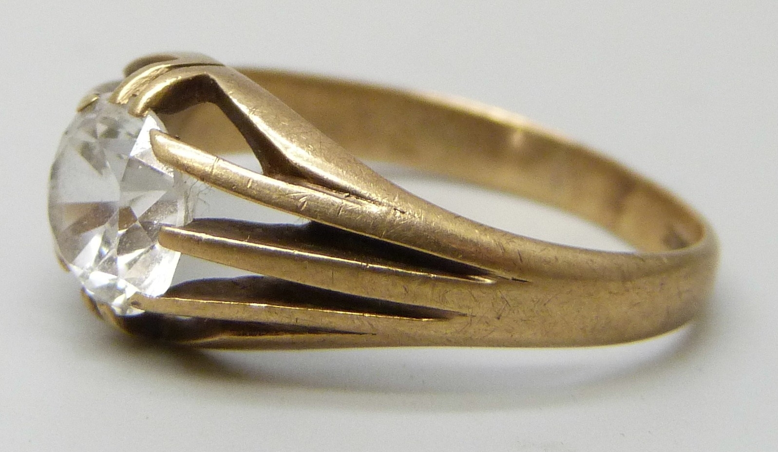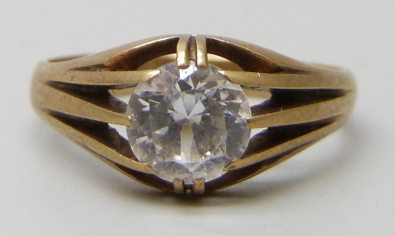 A 9ct gold white stone solitaire ring, testing as possibly sapphire, 2.8g, P
