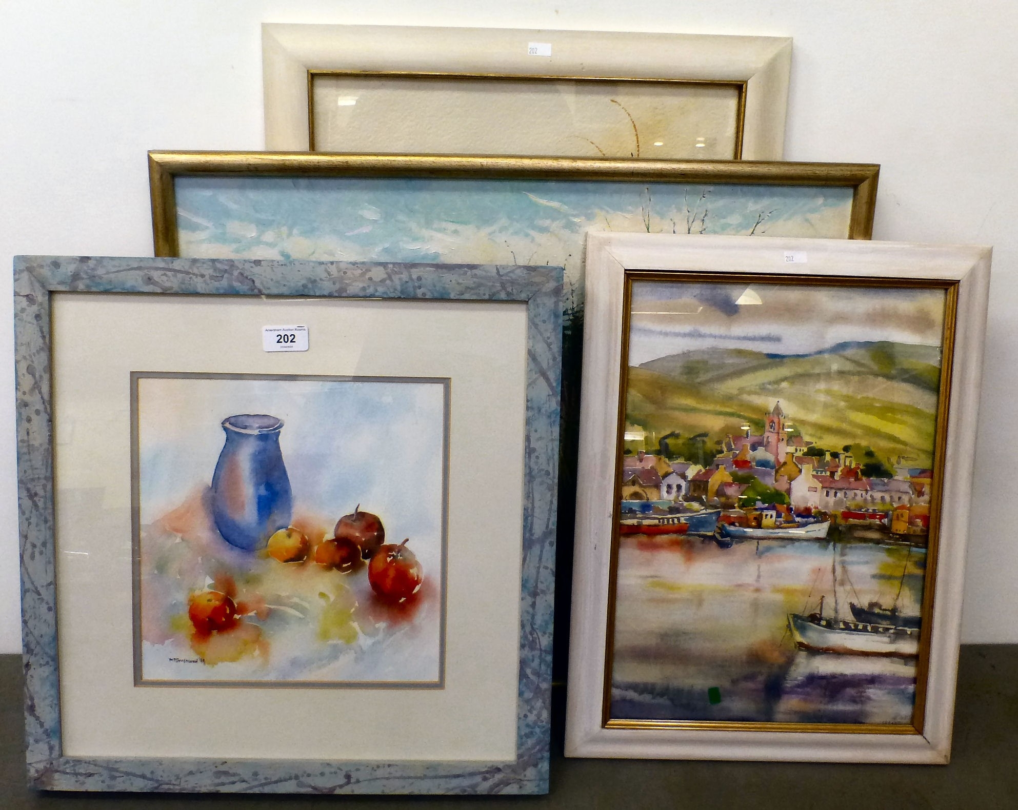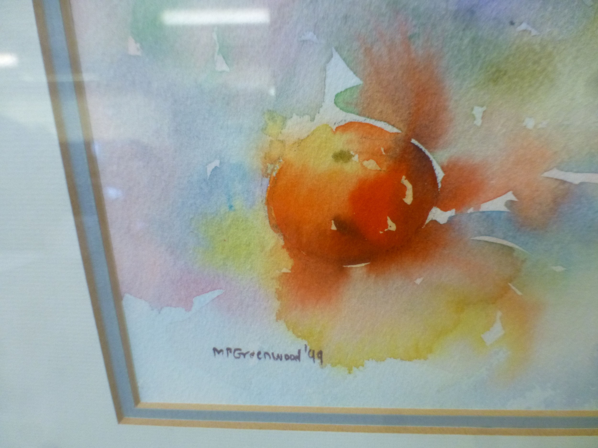 Pictures: to include Greenwood - a still life study of fruit watercolour bears a signature 11" x 10" framed
