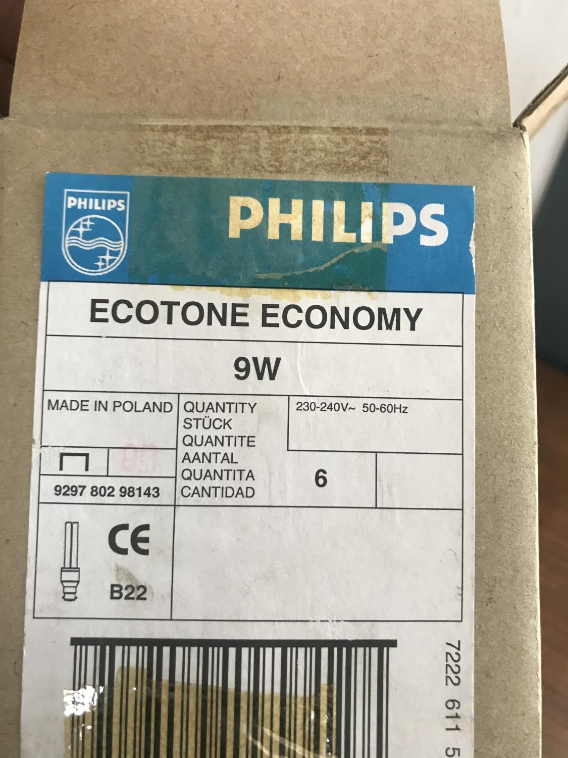 Box of 6 Philips Economy Lamps 9W B22 (New)