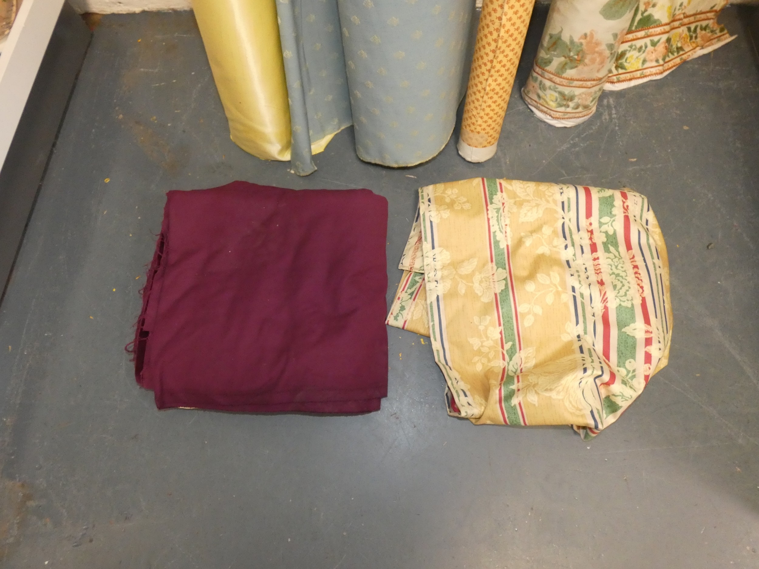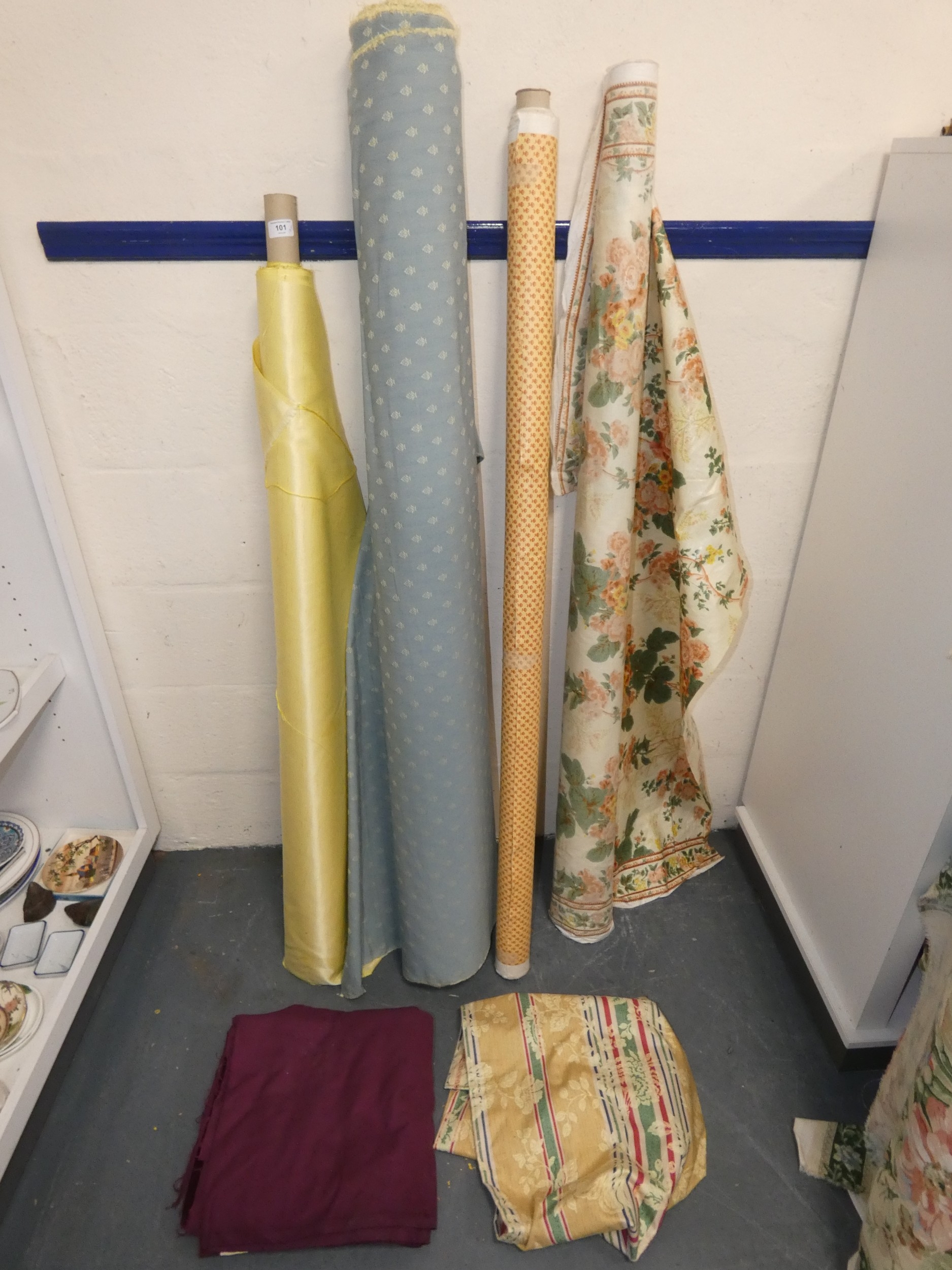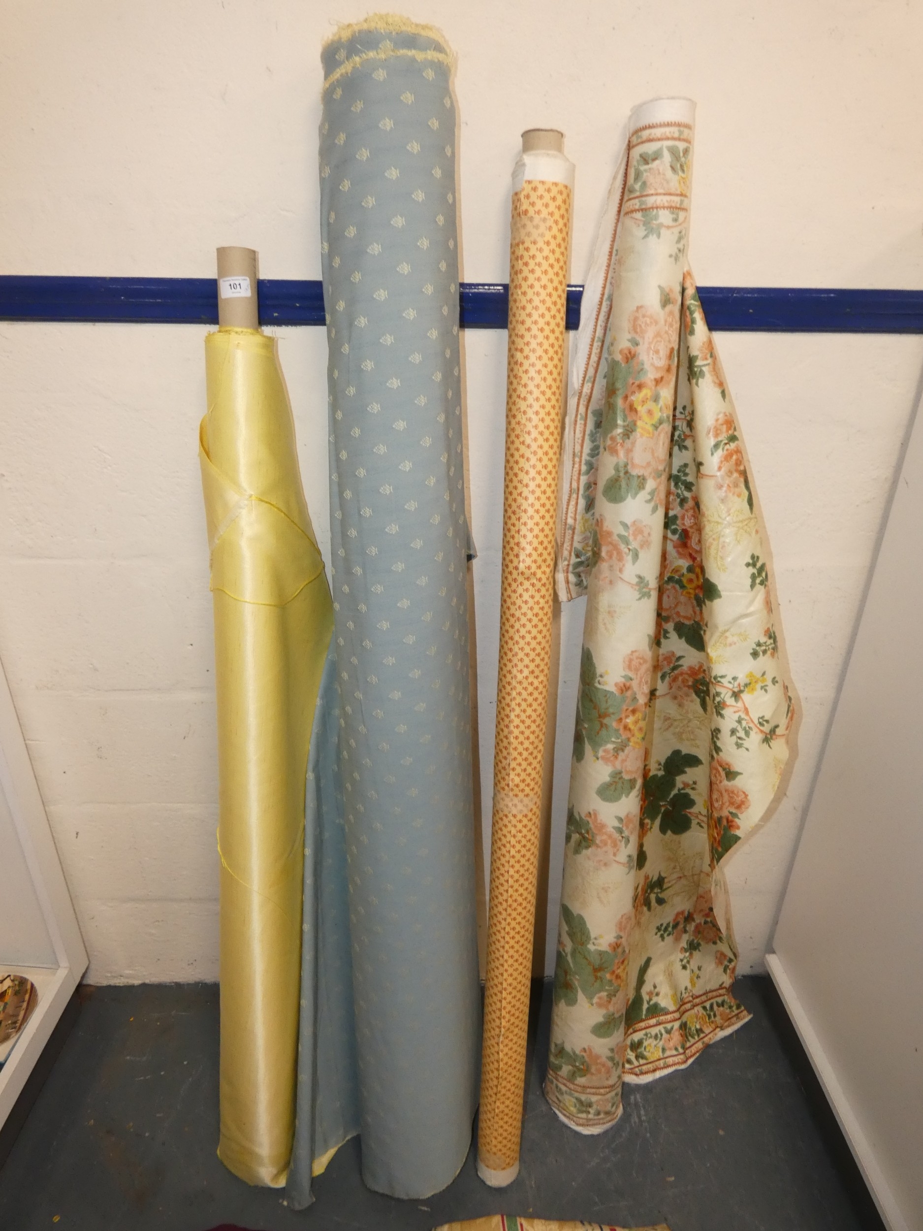 Four rolls of fabric and cuts.