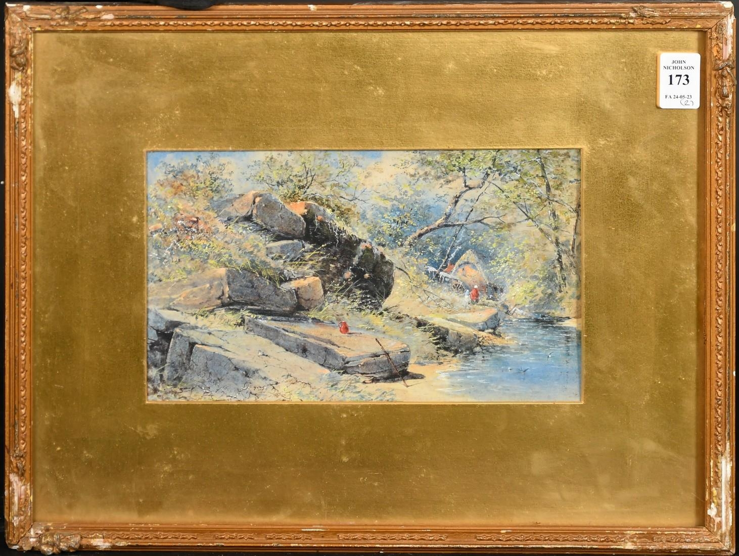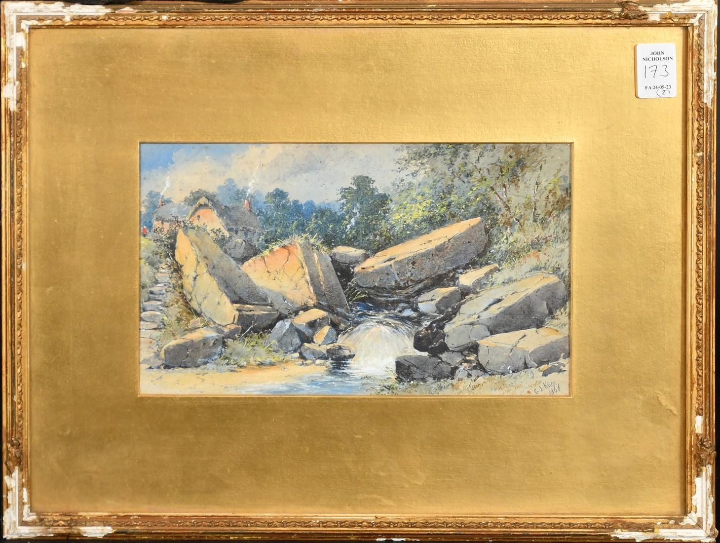 George James Knox (1884-1897) British, A pair of river landscapes with large stone rocks and boulders, watercolours, both signed and dated, each 5.5" x 9.5", (14x24.5cm) (2).