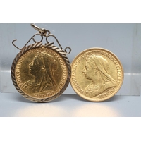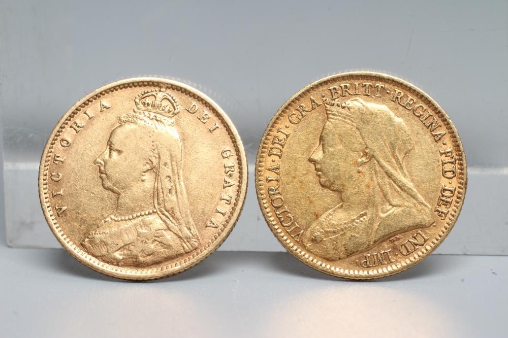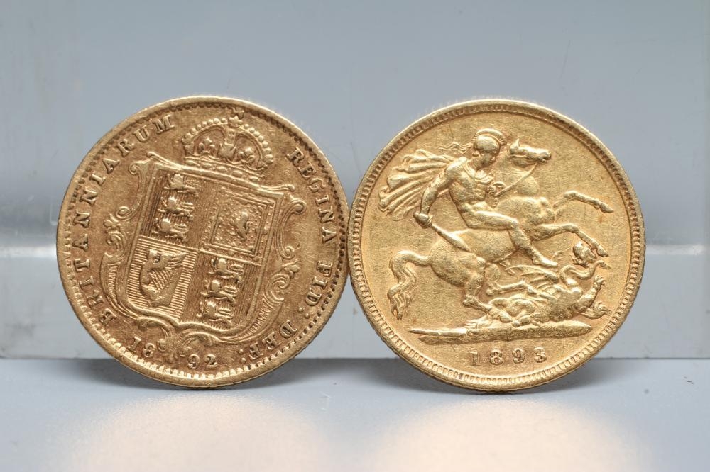 A VICTORIA SHIELD BACK HALF SOVEREIGN, 1892, together with another OH half sovereign, 1893, 7.9g total (2) (Est. plus 20% premium)