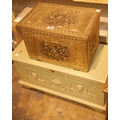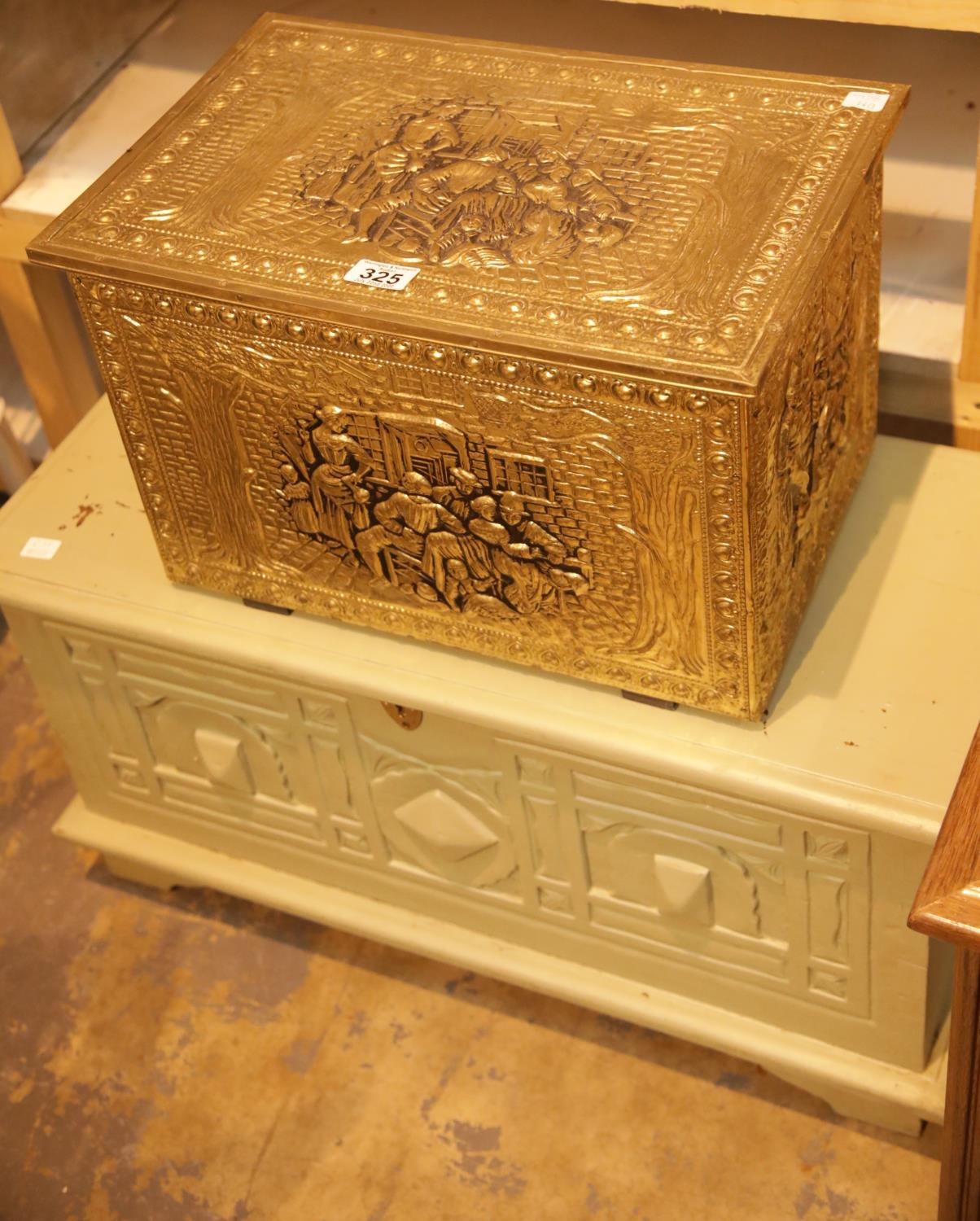 Painted hardwood chest with brass fittings 74 x 34 x 38 cm and a brass coal box. This lot is not available for in-house P&P.
