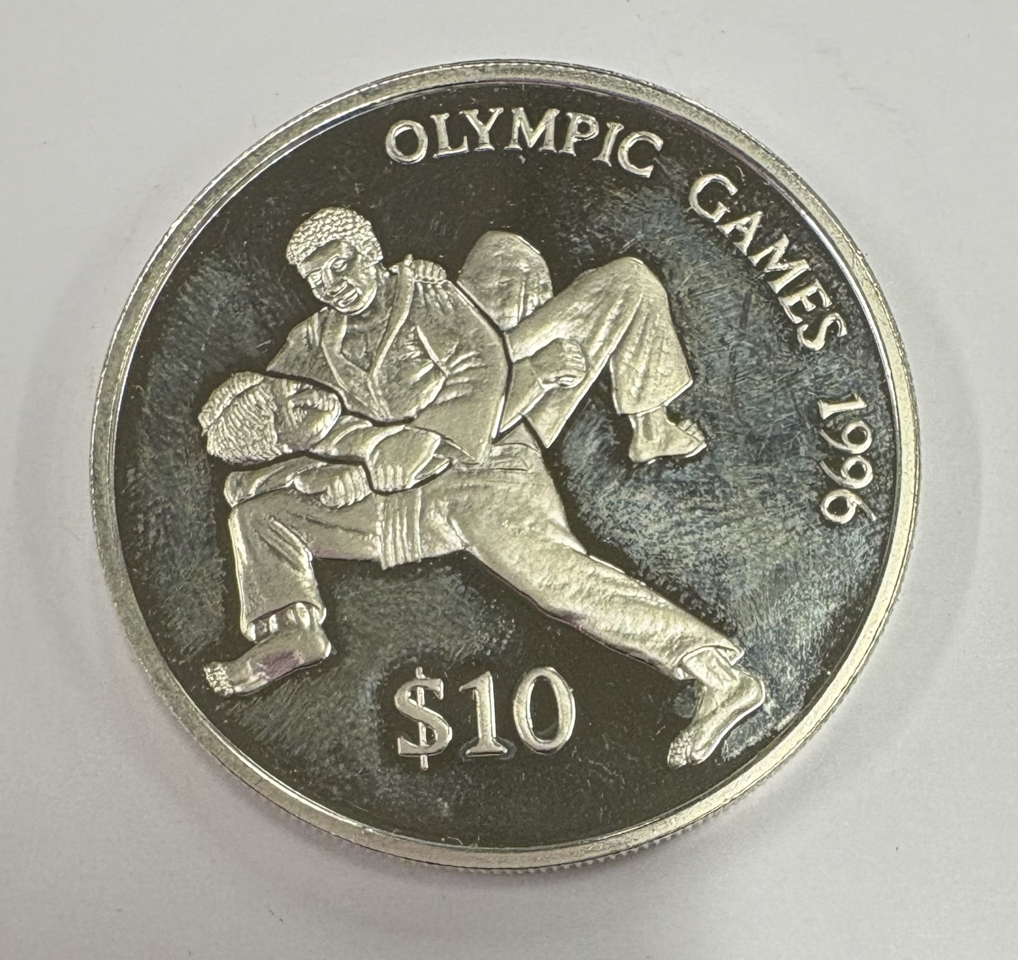 A silver Ten Dollar coin commemorating the 1996 Olympic Games. Fiji 1993. Approx. 28 grams. Est. £60 - £80.