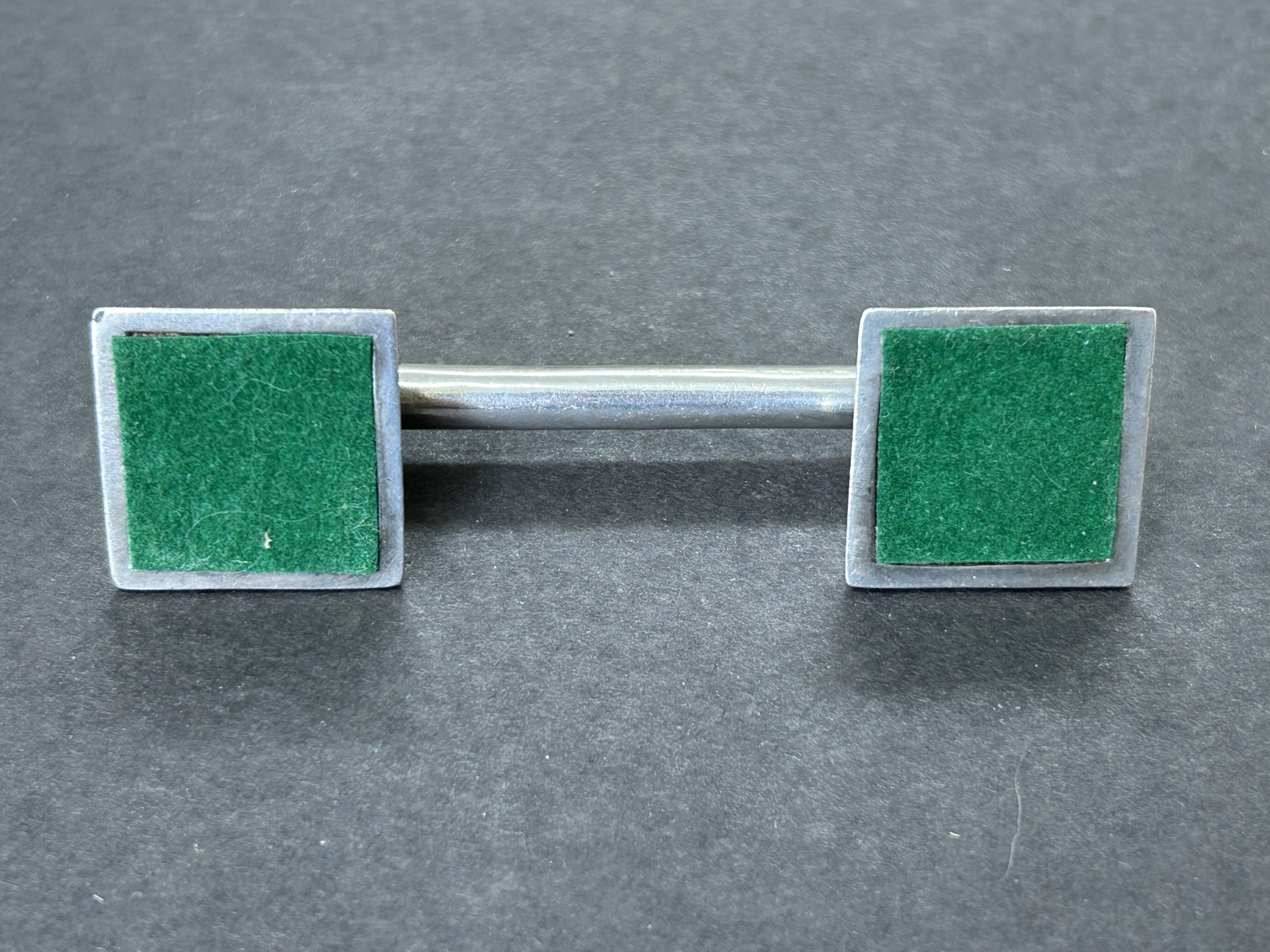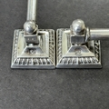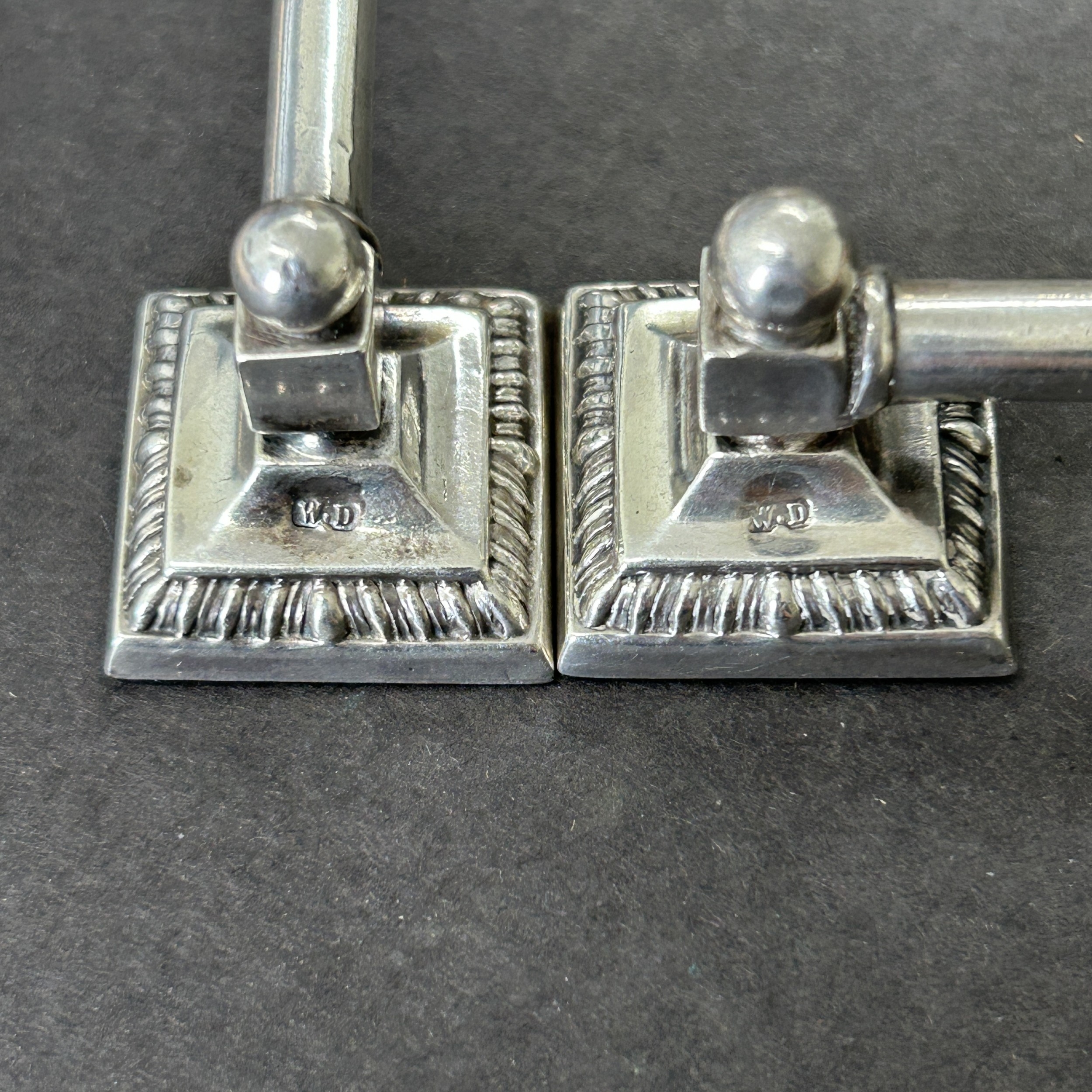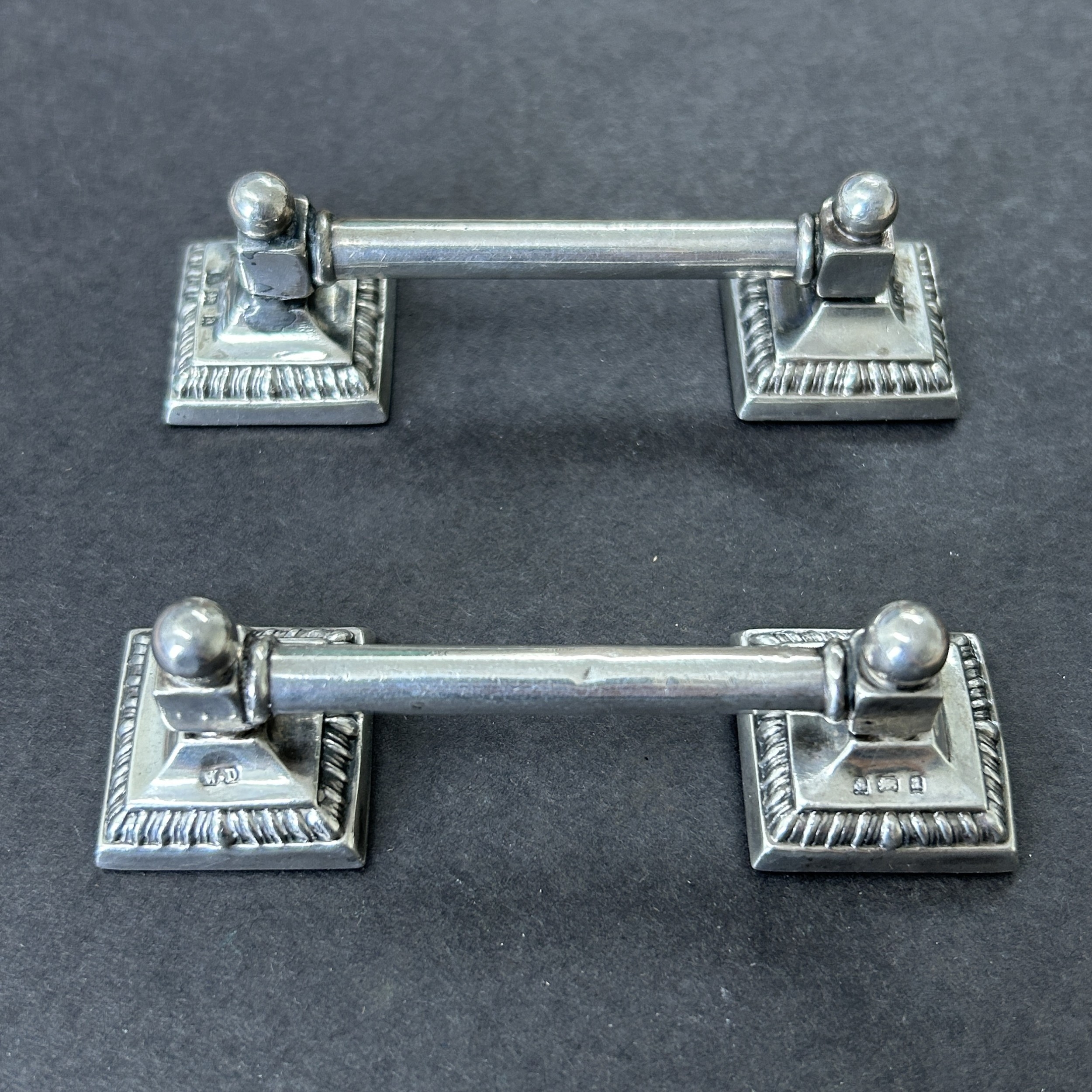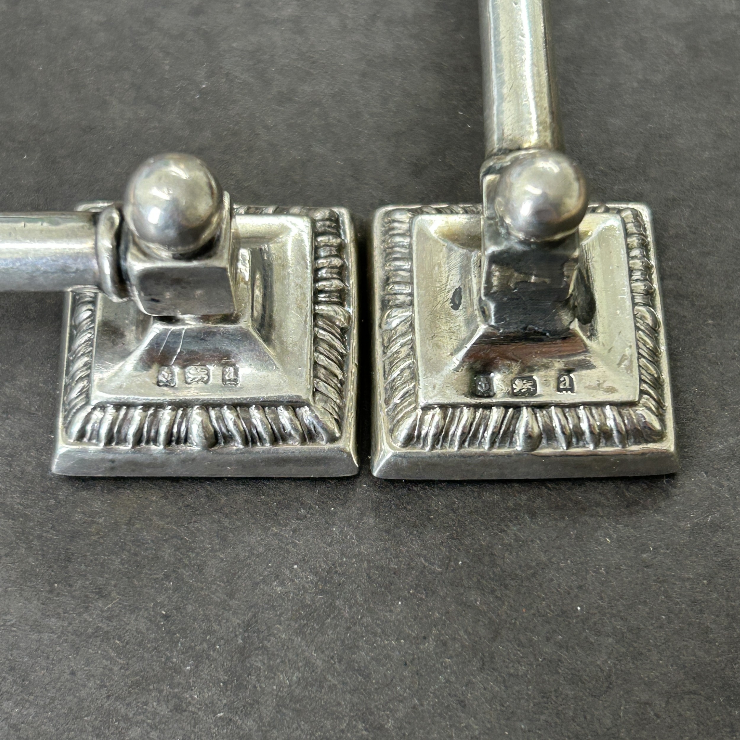 A pair of hallmarked silver knife rests with filled bases, approx. 3 1/2" long, weight approx. 50g (possible old repair to one)
