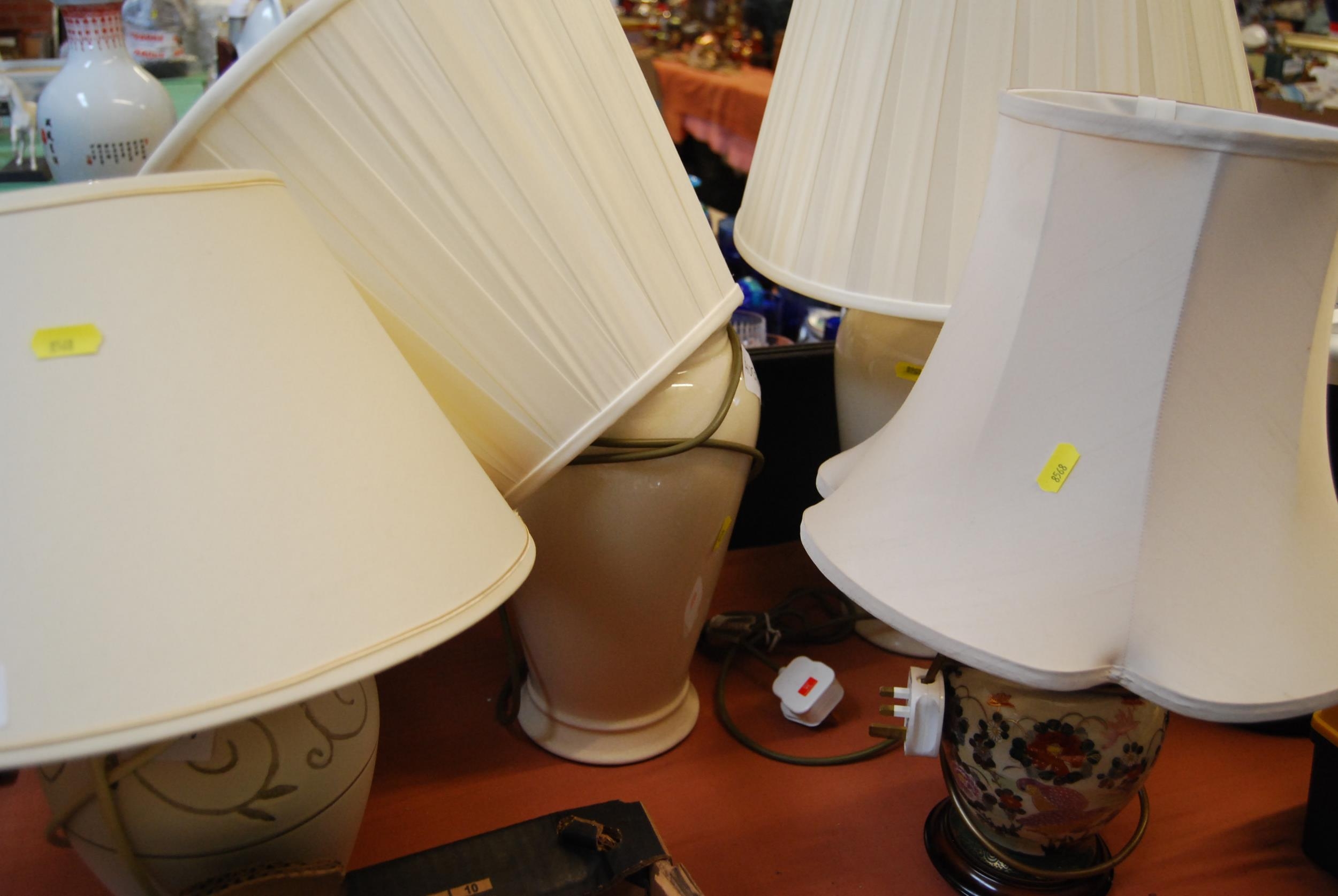 PAIR OF CREAM TABLE LAMPS & 2 OTHERS