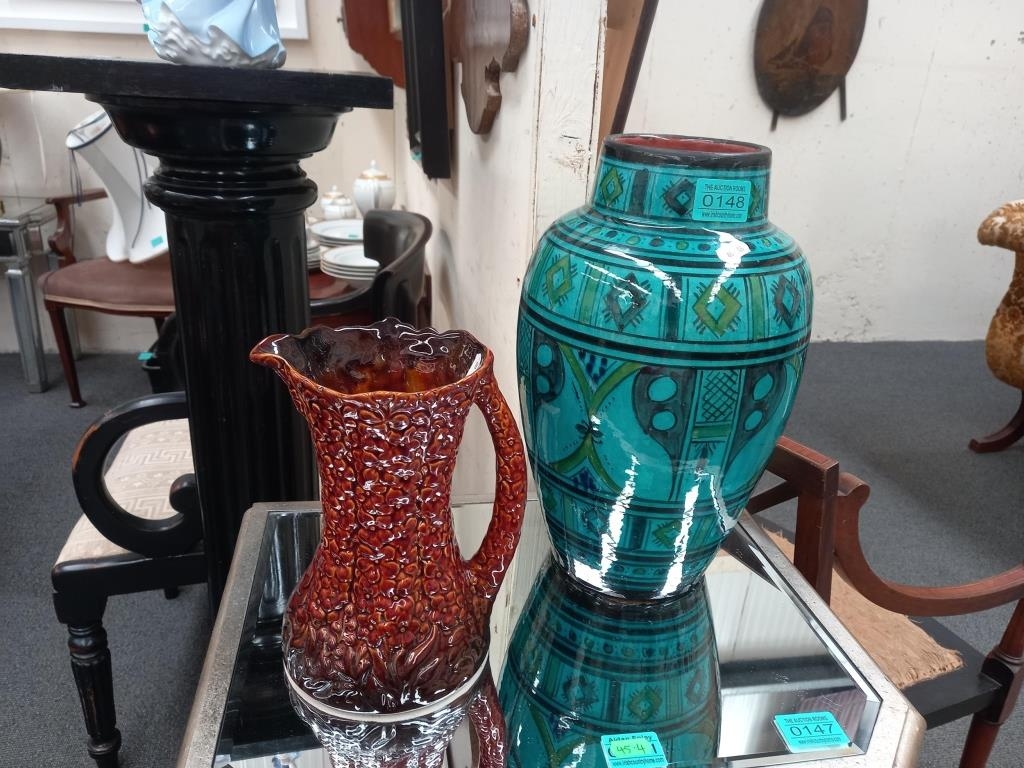 Sylvac Jug and a Tall Eastern Green Pottery Vase