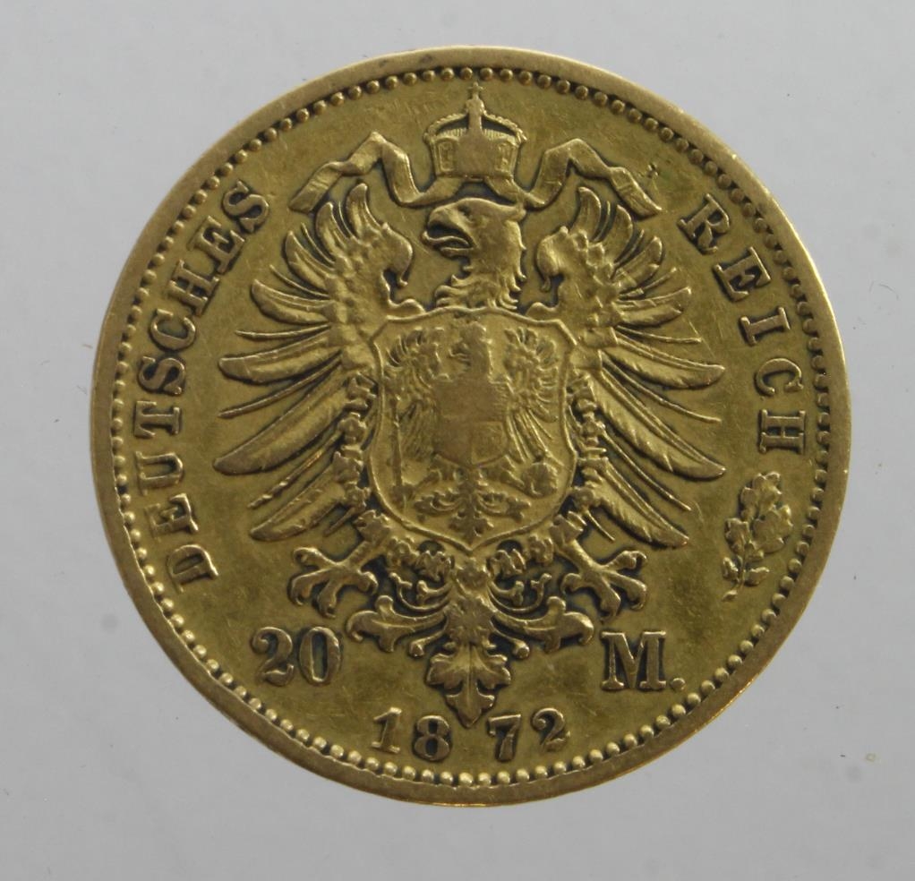 German States, Prussia gold 20 Mark 1872A, VF (0.2305 troy oz AGW)