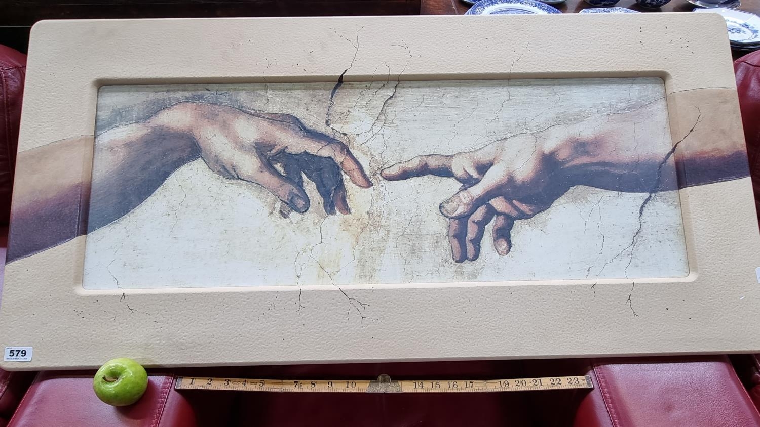A large Contemporary Reproduction of Michelangelo's "The Creation of Adam".