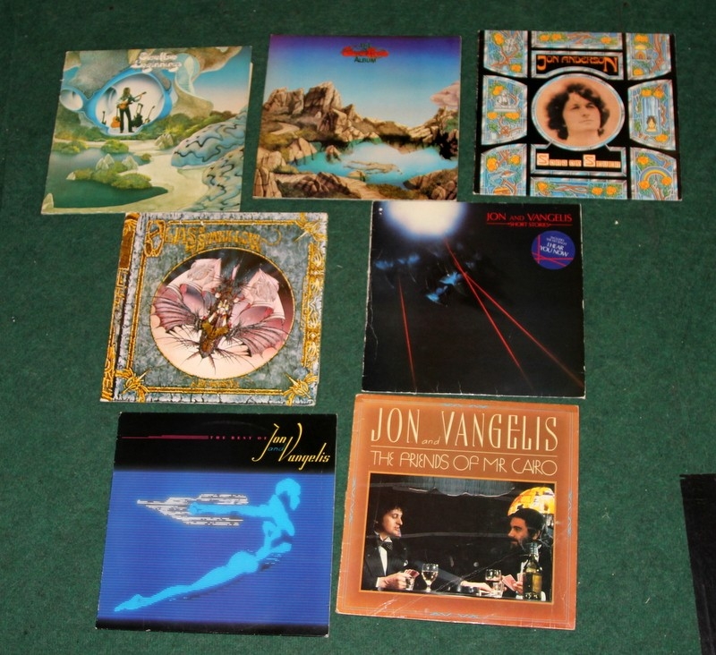 Yes - Prog Rock related original vinyl LP's: The Steve Howe Album, 1979 K50621 (gatefold) Steve Howe Beginnings 1975 K50151 (gatefold). Jon Anderson Songs of Seven 1980 ALT 50 756, Olias of Sunhillow 1976 K50621 (gatefold). Lot also includes 3 x Jon and Vangelis vinyl LP's.