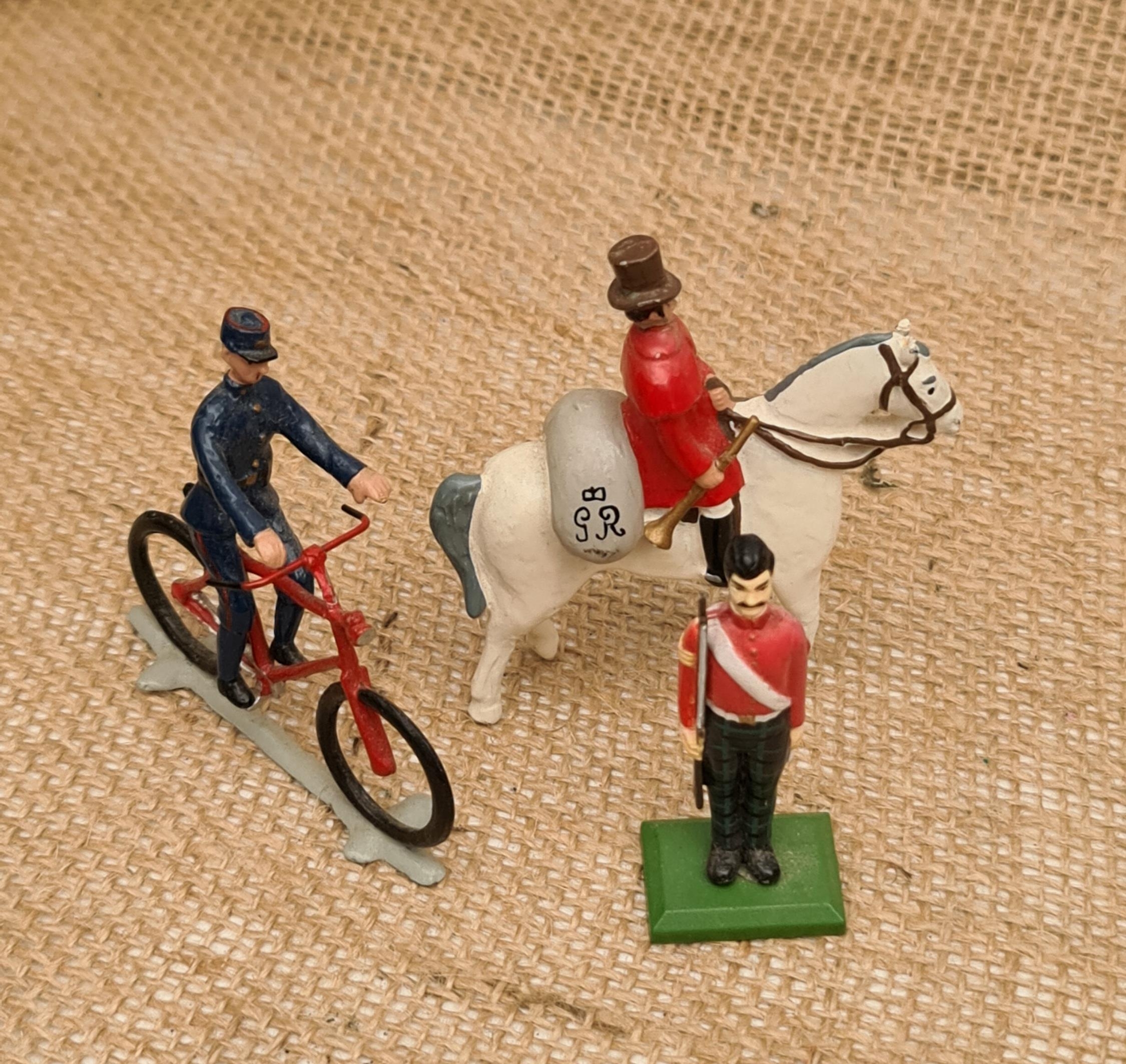 Vintage Lead Collectable Toy Figures Includes Grant Toy Soldier, George VI Rider on Horseback and an Early 20th Century Post Office Pushbike and Rider. Shipping is available. Please ask for a quote before bidding. Where possible we combine shipping costs. Remember, if you are the highest bidder above reserve on this Lot you have bought the item and are legally responsible for the item. Viewing is recommended in either person or via video link. Contact us to arrange.