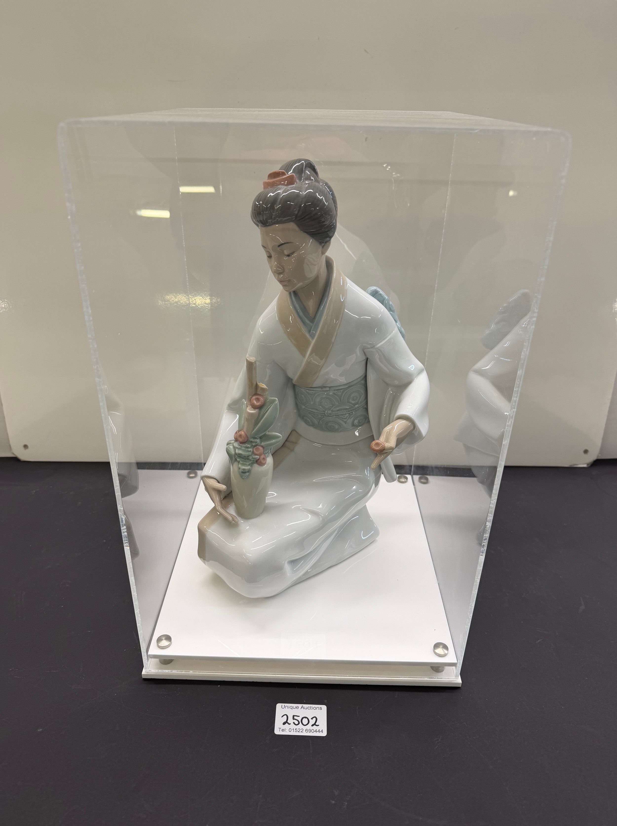 A Nao by Lladro porcelain figurine titled The Decorator model number 01276 in acrylic case