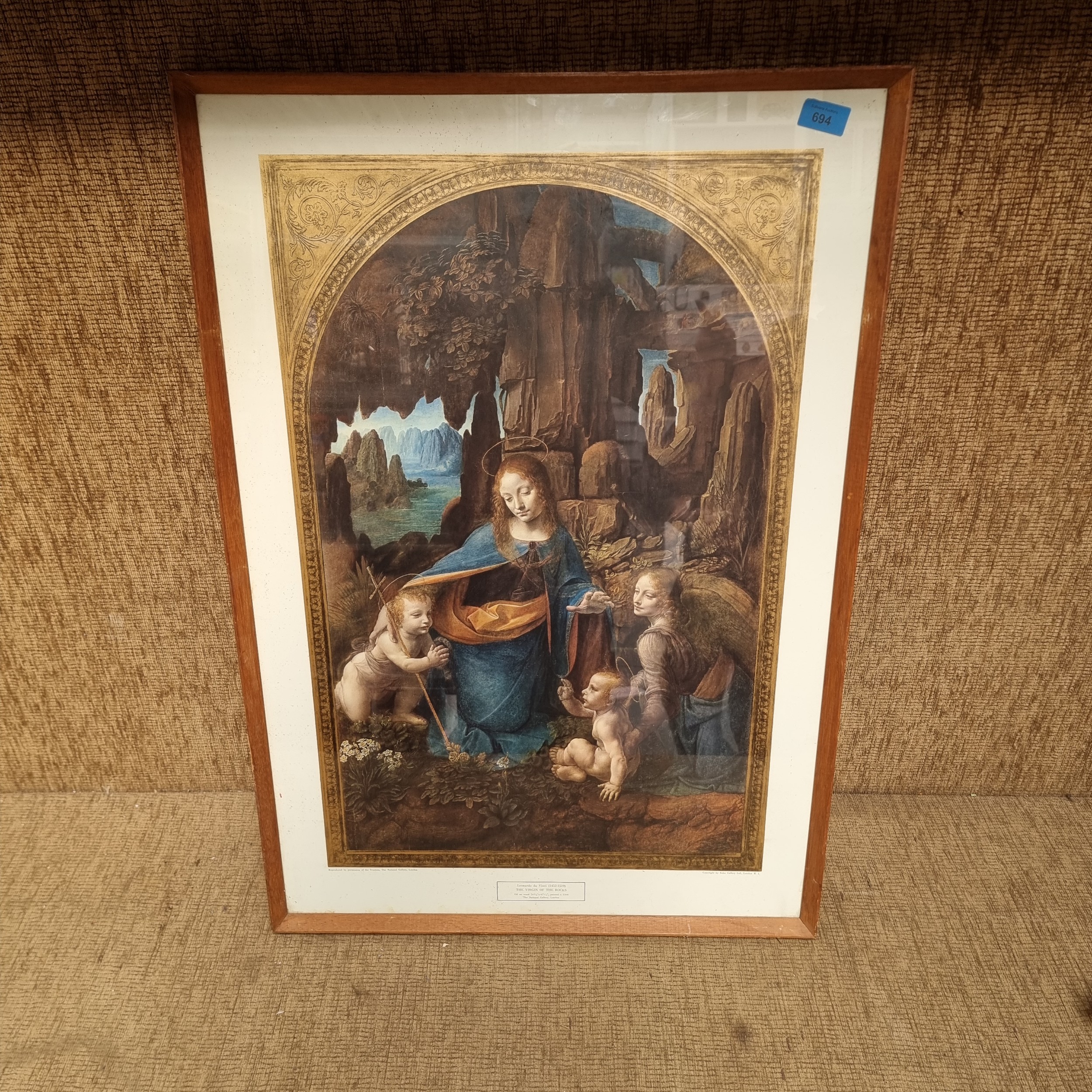 Lithograph of Leonardo Da Vinci (1452-1519) The Virgin of the rocks 83cm x 60cm.