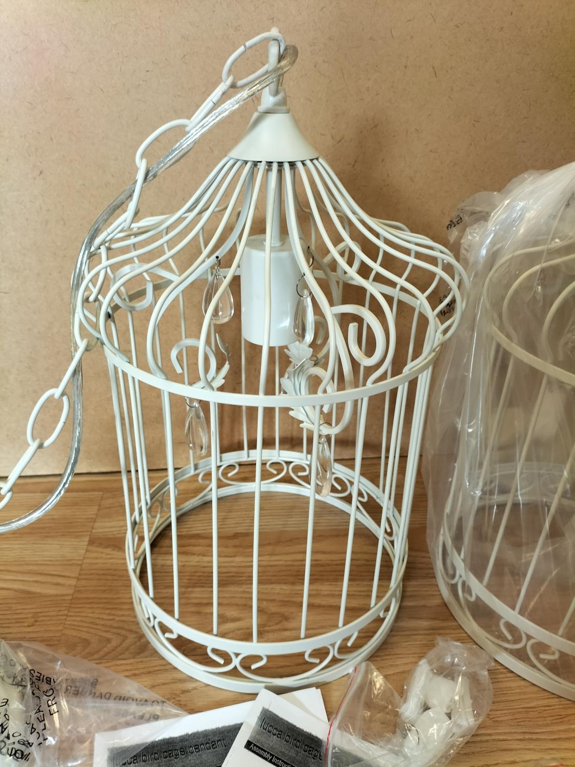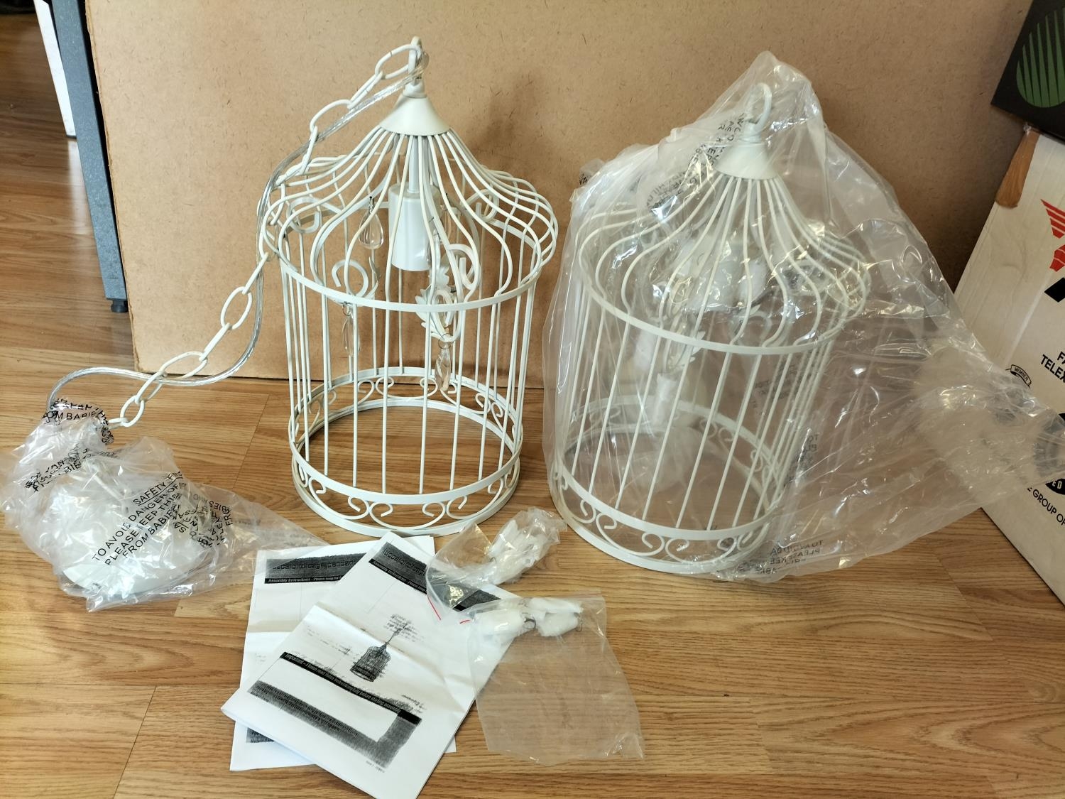 As New/Unused 2 x 40cm Birdcage Outdoor Patio Lighting Pendants (Mains Powered). In Original Boxes but Boxes are Damaged.