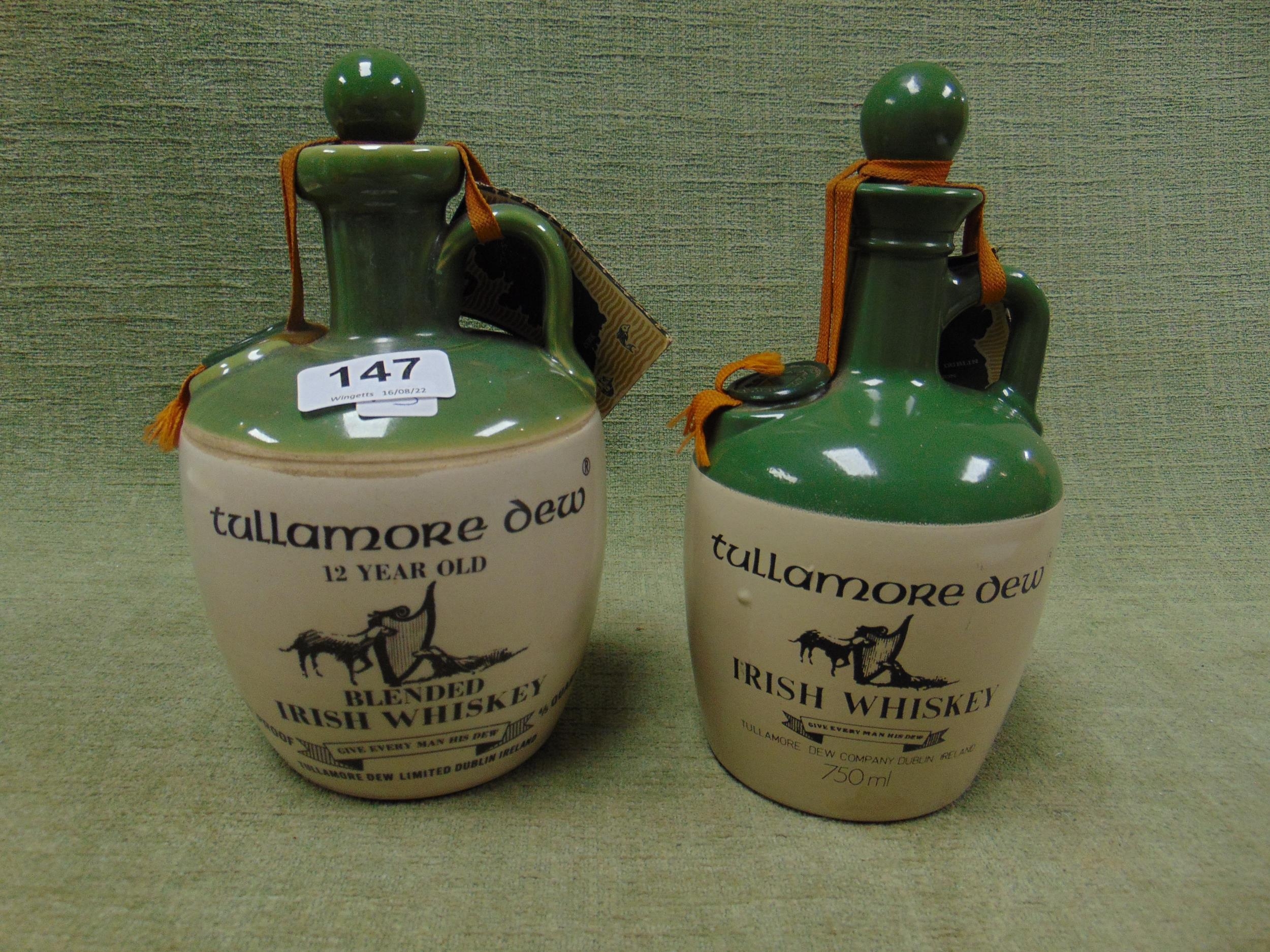 4/5 quart decanter and a 750ml decanter of Tullamore Dew 12 Year Old Blended Irish Whiskey