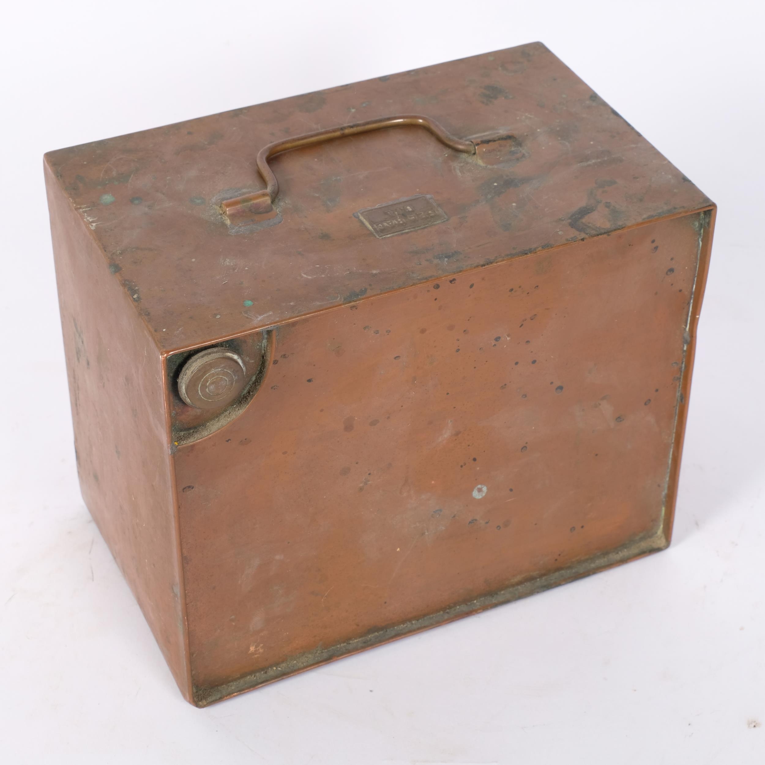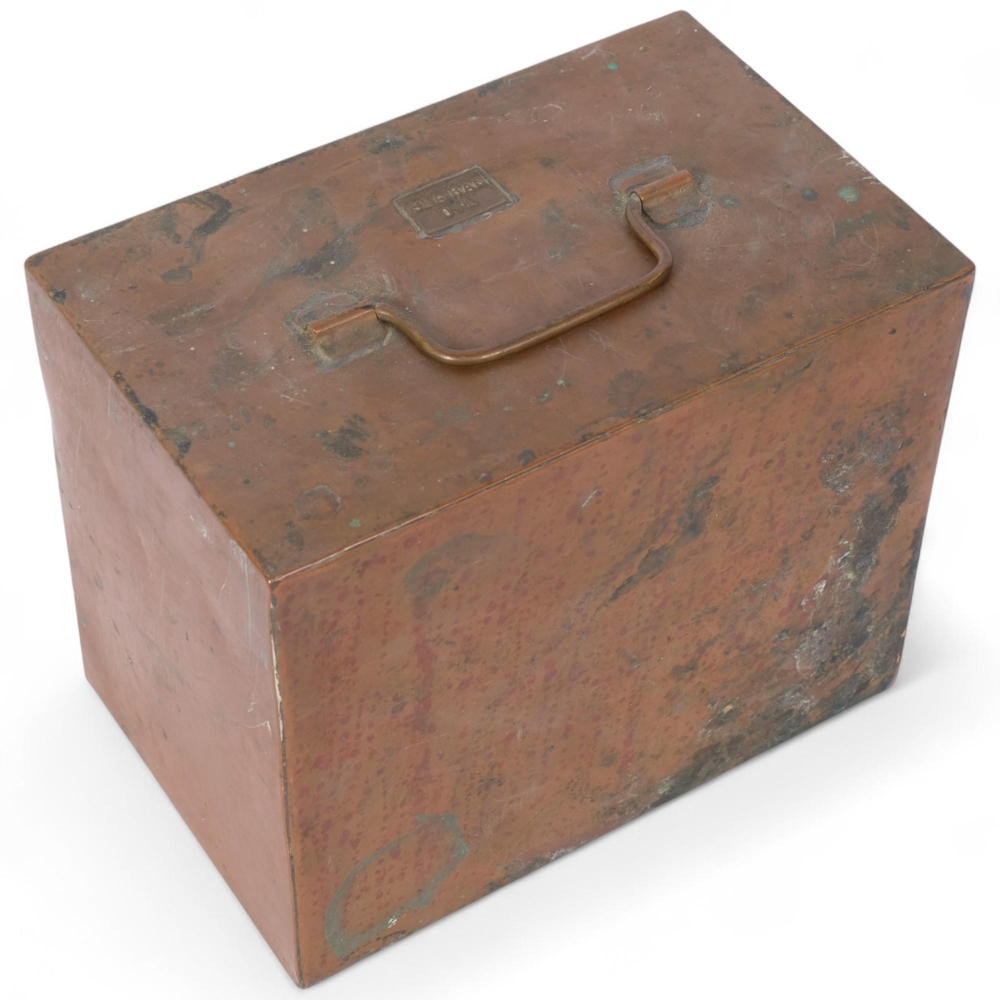 An early 20th century copper C-bag oil container
