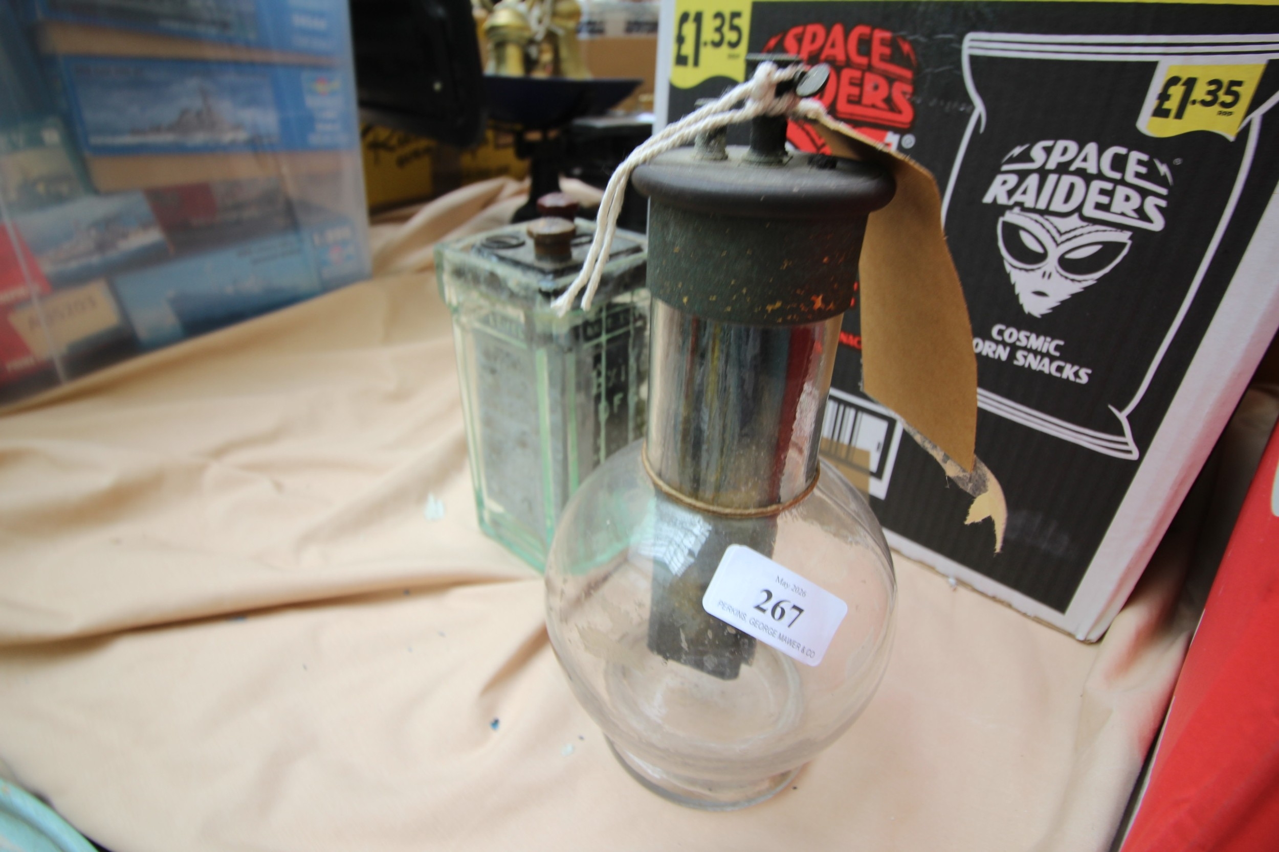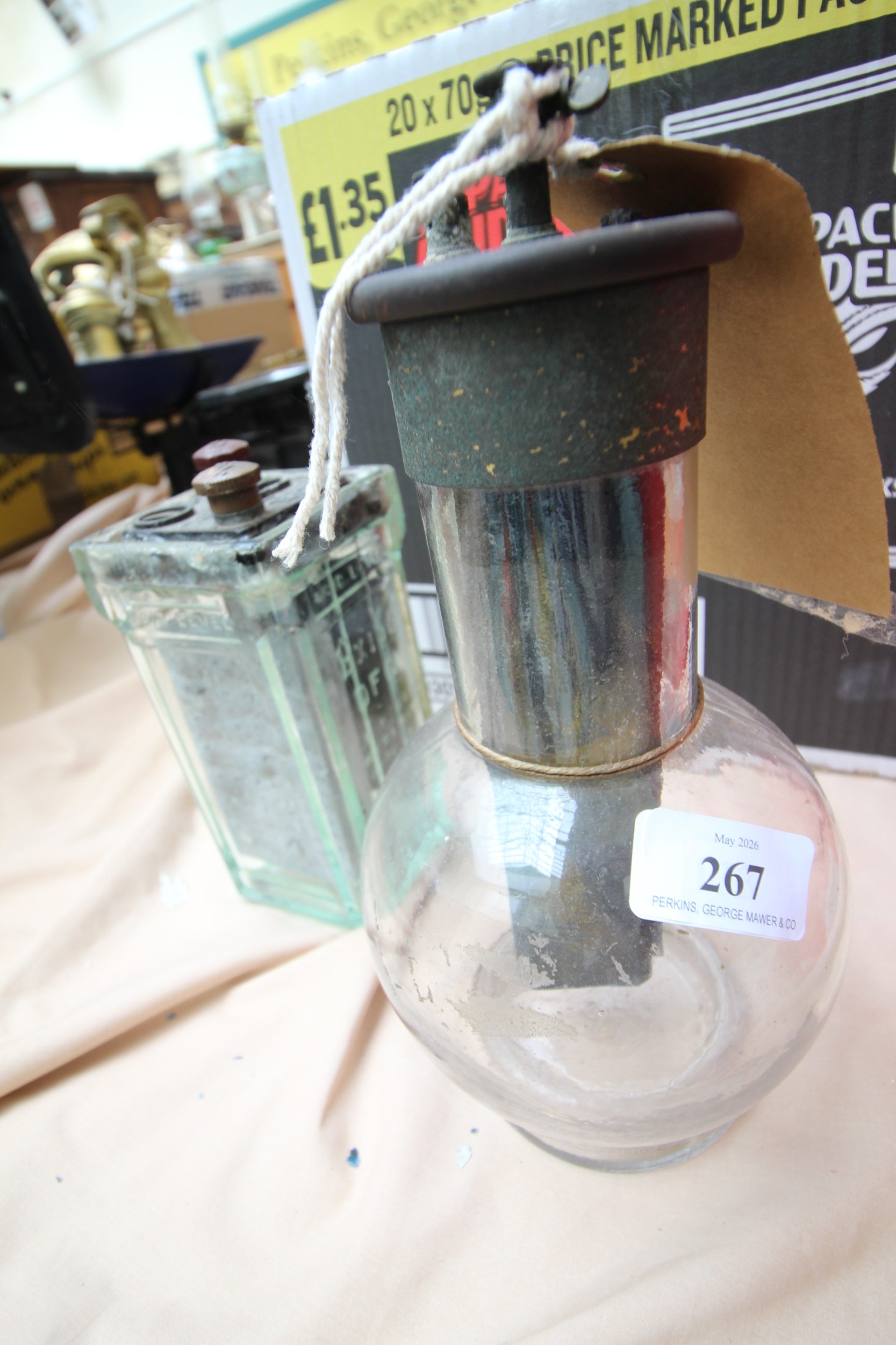 Antique Victorian battery in bulbous glass with additional item