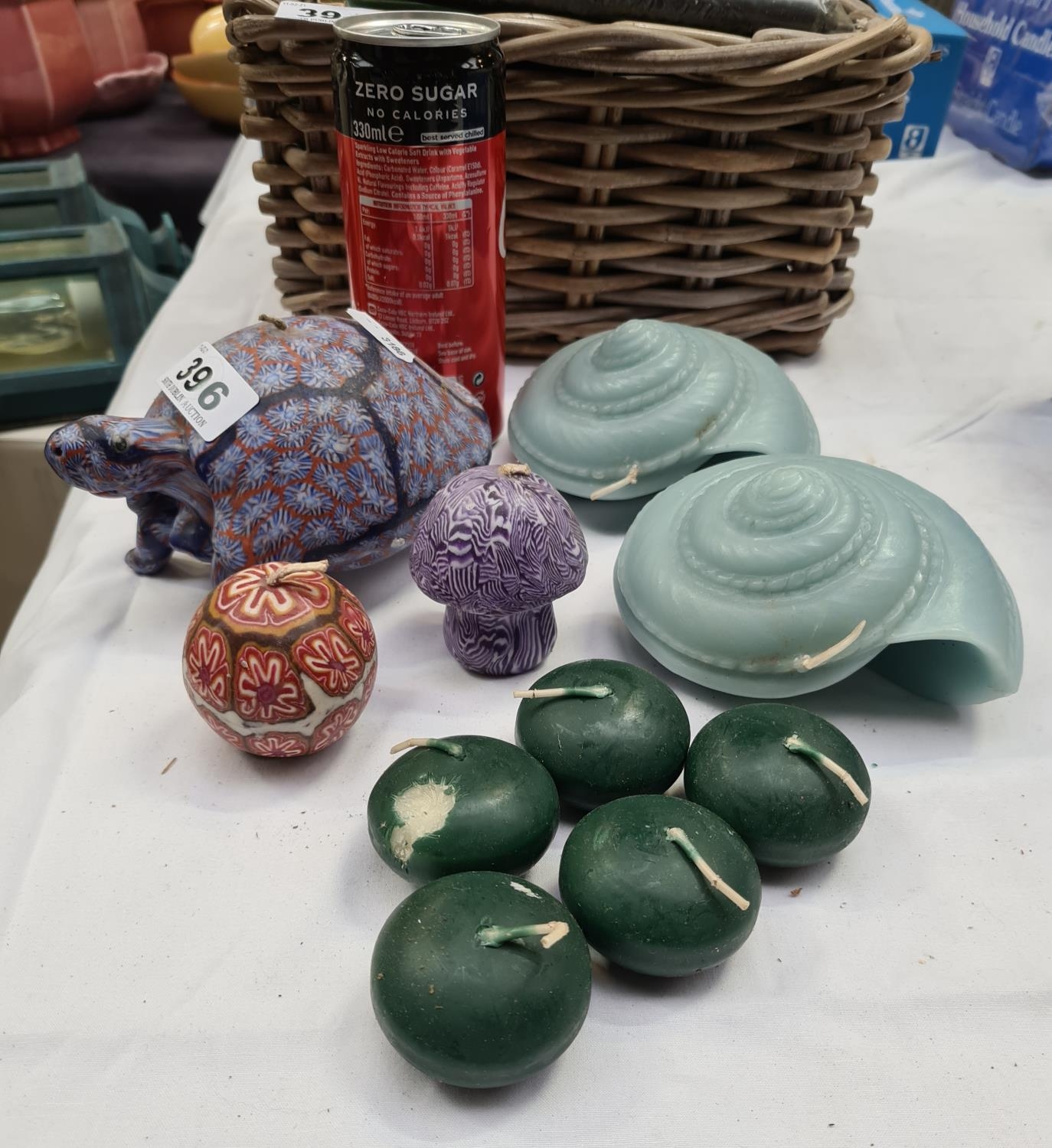 Very unusual & decorative candles in various shapes and sizes including shells and a tortoise