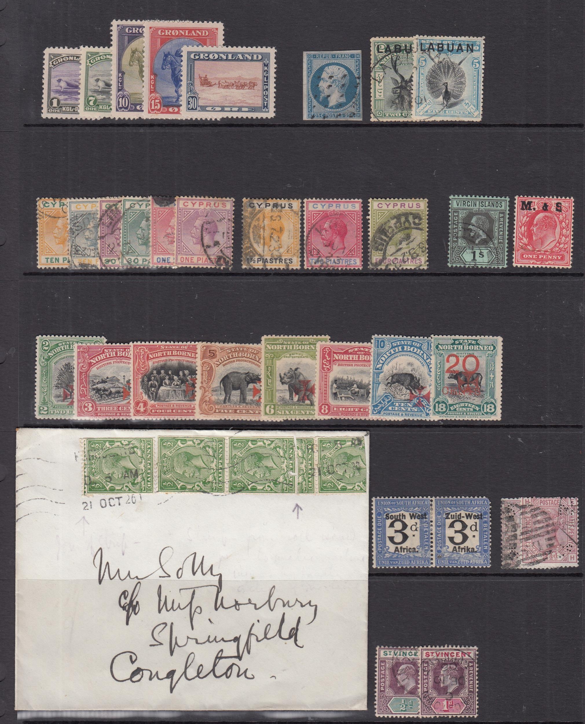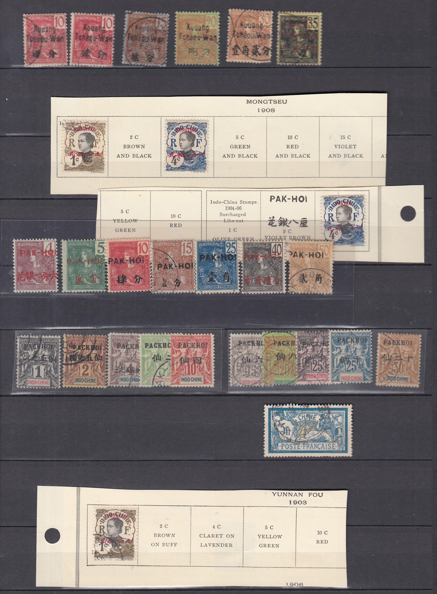 An accumulation with extensive duplicated used Tunisia in large stock book, Indo-China on stock sheets (Pakhoi etc), some Algeria and a nice range of mint Fezzan (cat £250, other bits and pieces on pages and cards incl a few Commonwealth, some Singapore FDCs etc.