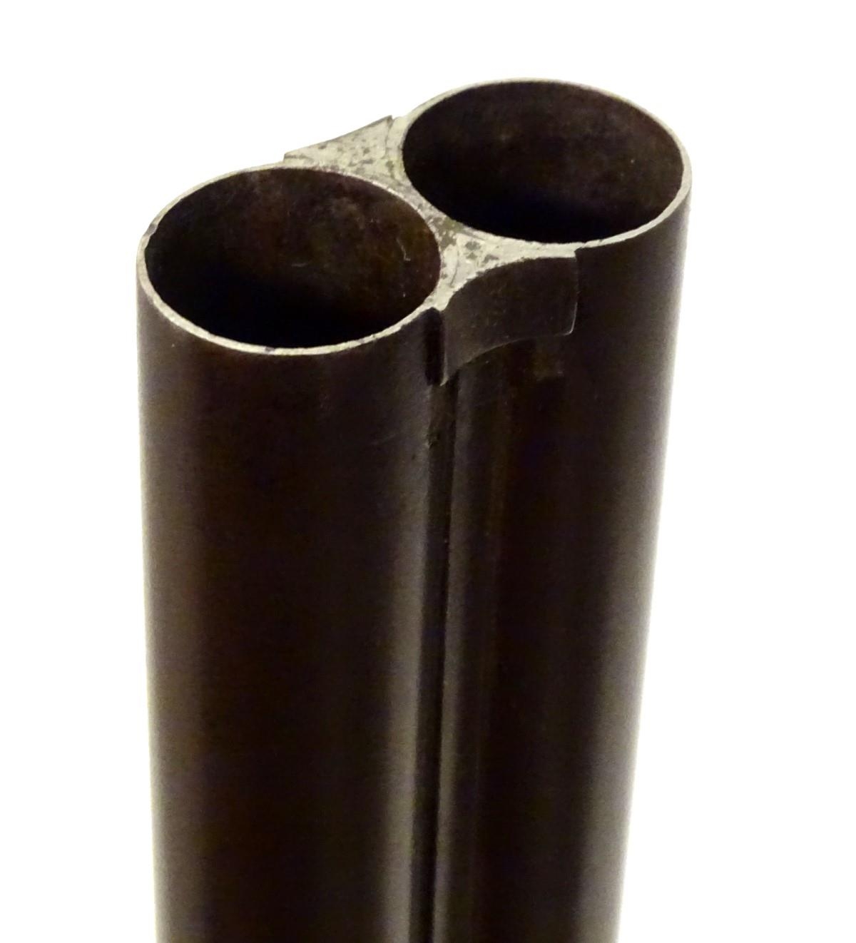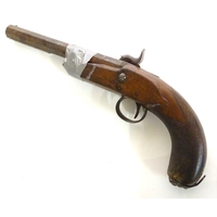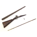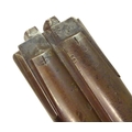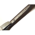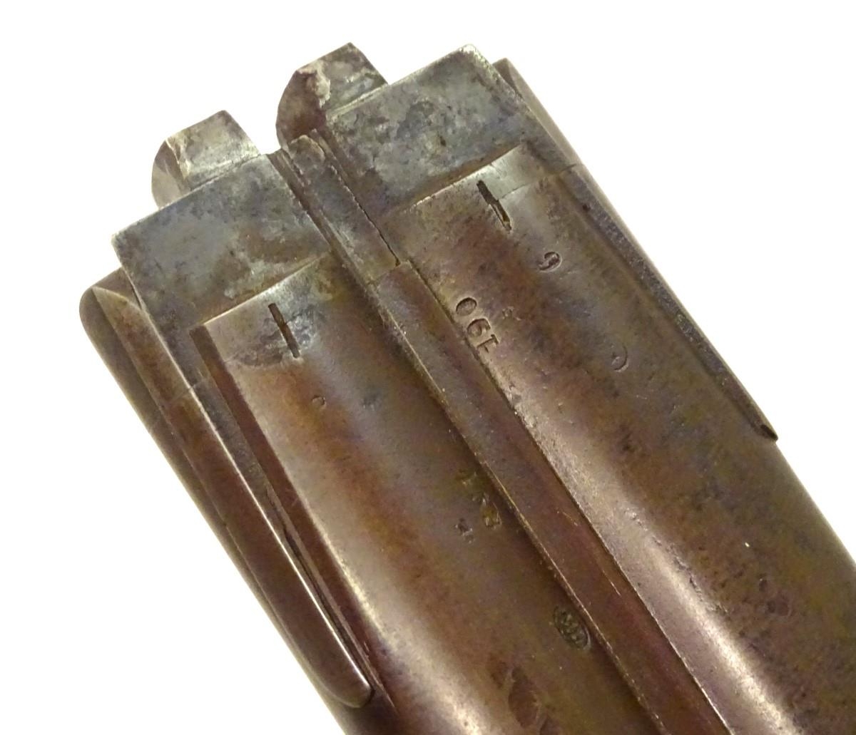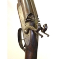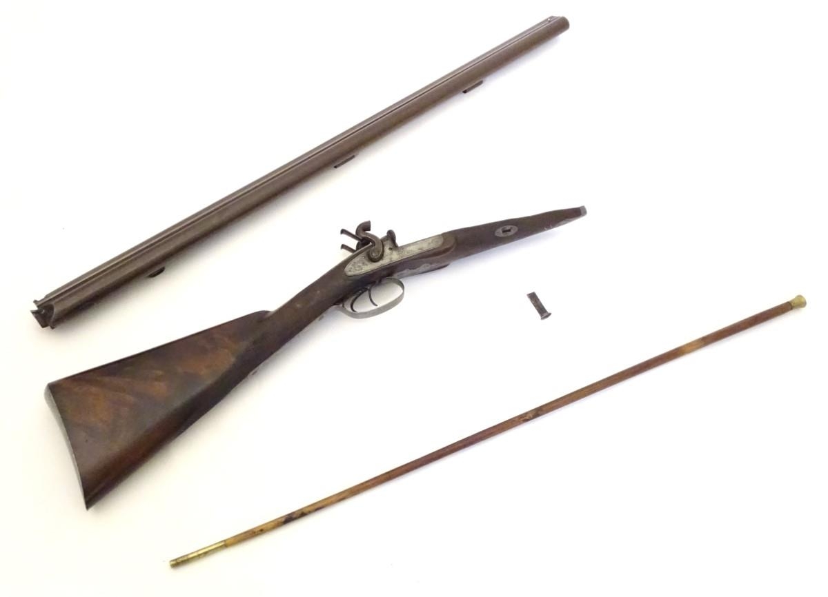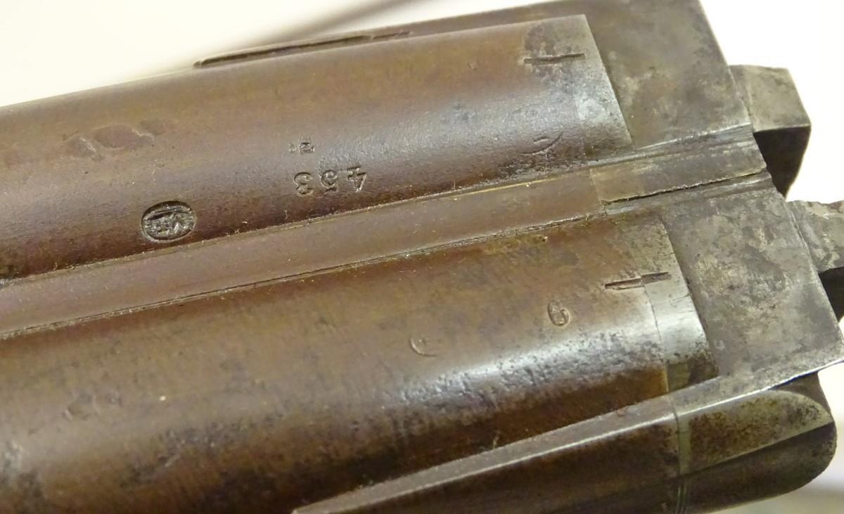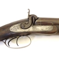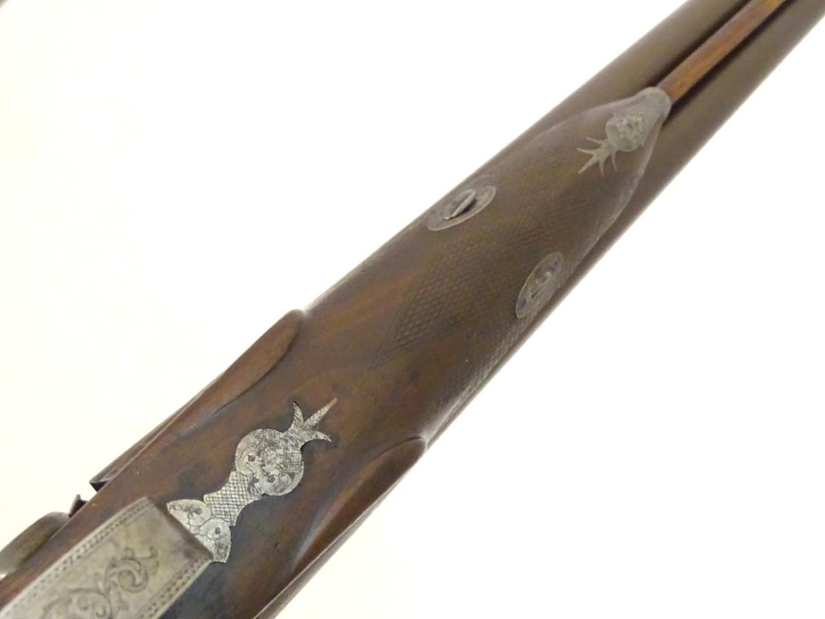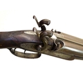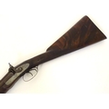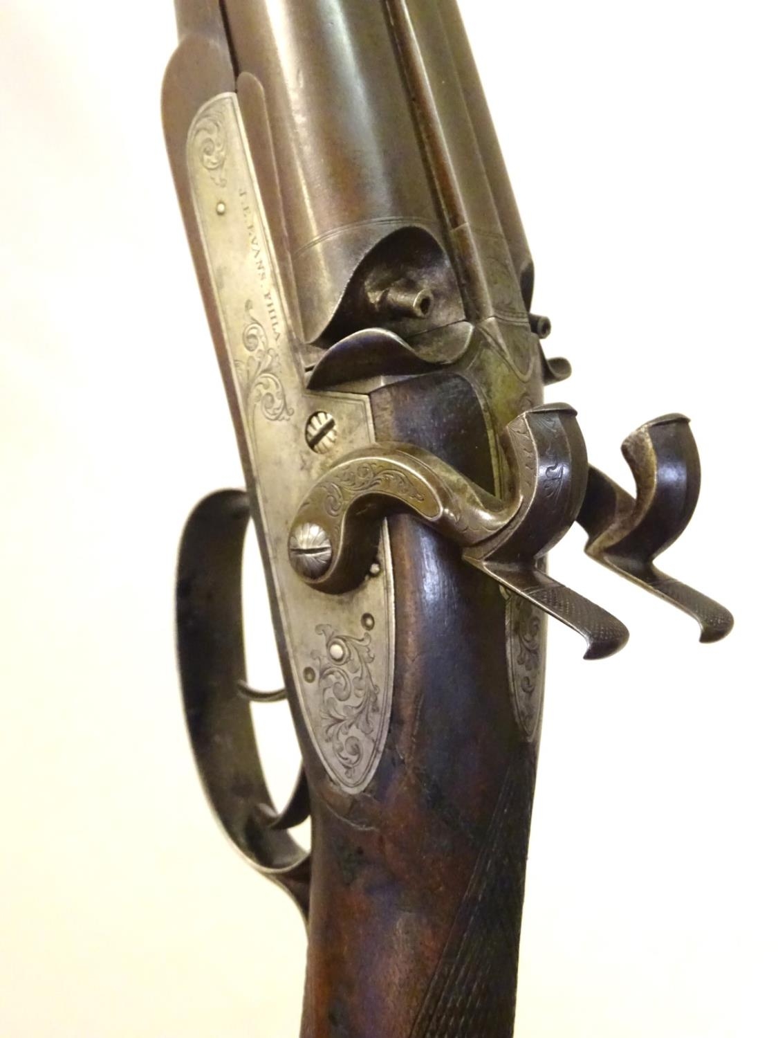 An 19thC American 10 bore side by side percussion muzzleloading black powder hammergun by J. E. Evans, Philadelphia. 30 3/4'' damascus barrels with signed concave rib, stamped under with serial number (453), maker's initials and 'ML' within an oval. Ramrod under. Straight-hand figured walnut stock with chequered palm and fore-end. The action, tang and trigger guard finely engraved with foliate scroll motifs, signed ' J. E. Evans. Phila.' James E. Evans is listed as a Philadelphia maker of 'percussion, duelling and derringer type pistols and fine double shotguns' at various Philadelphia addresses between 1850-1865. Notice to international bidders: Please note we are a UK based auction house. We ask that you take into consideration possible shipping restrictions and shipping costs prior to bidding with us.