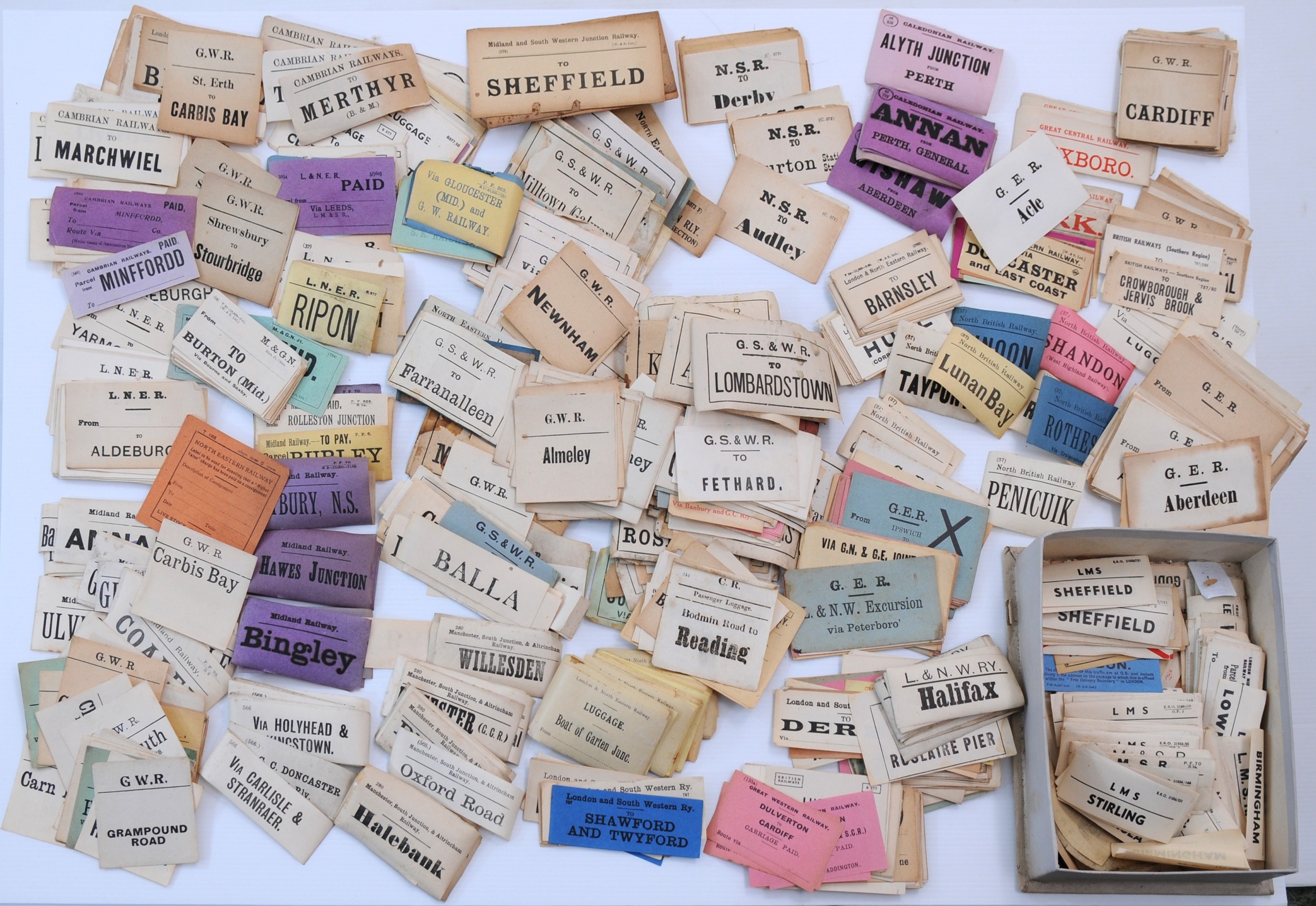Box of British & Irish luggage labels, good quantity as per image. (D2X) (Dispatch by Mailboxes/Collect from Banbury Depot)