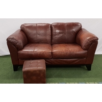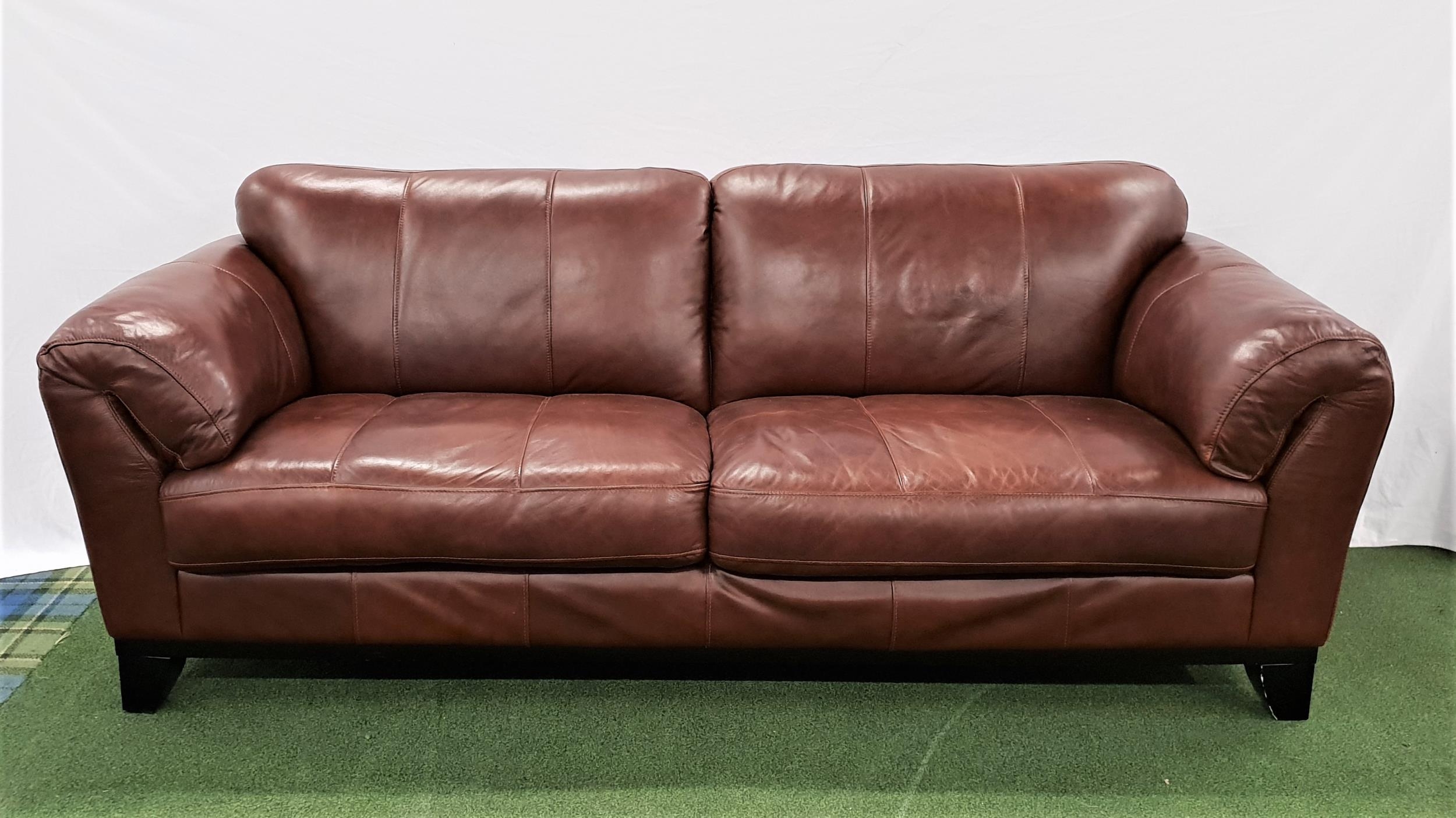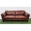 LARGE BROWN LEATHER SOFAwith rollover arms, standing on stout shaped supports, 220cm long