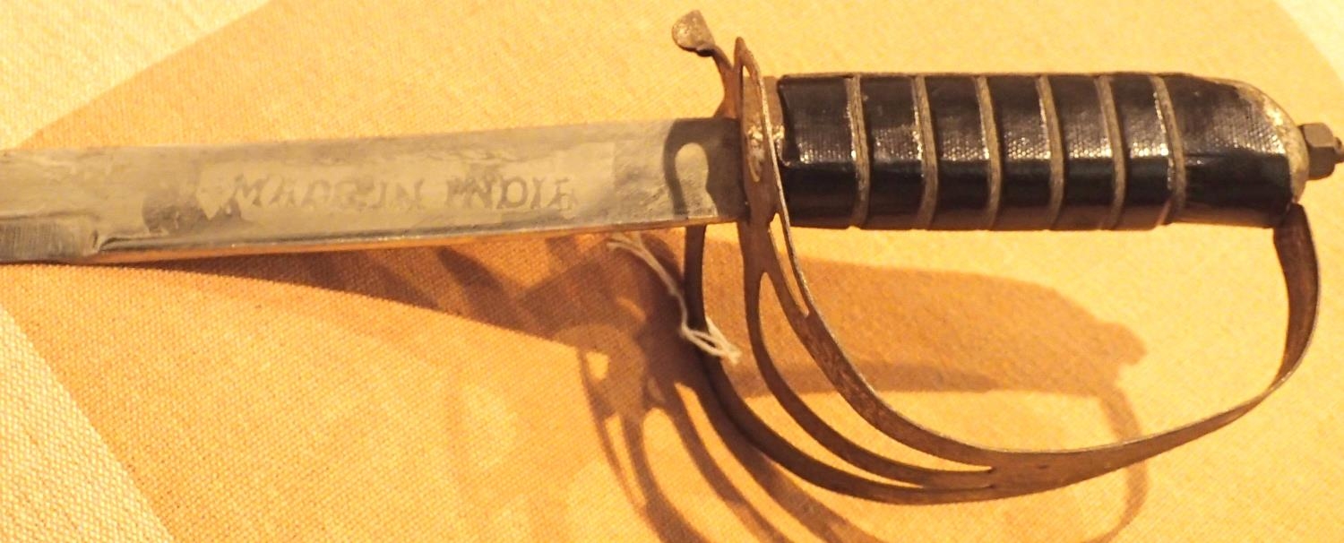 Antique Indian army sabre , L: 94 cm. Not available for in-house P&P, contact Paul O'Hea at Mailboxes on 01925 659133