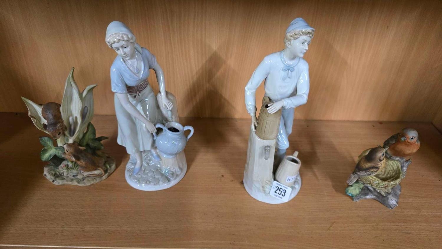2 ANIMAL CHINA FIGURES & 2 FIGURES OF A MAN & A WOMAN