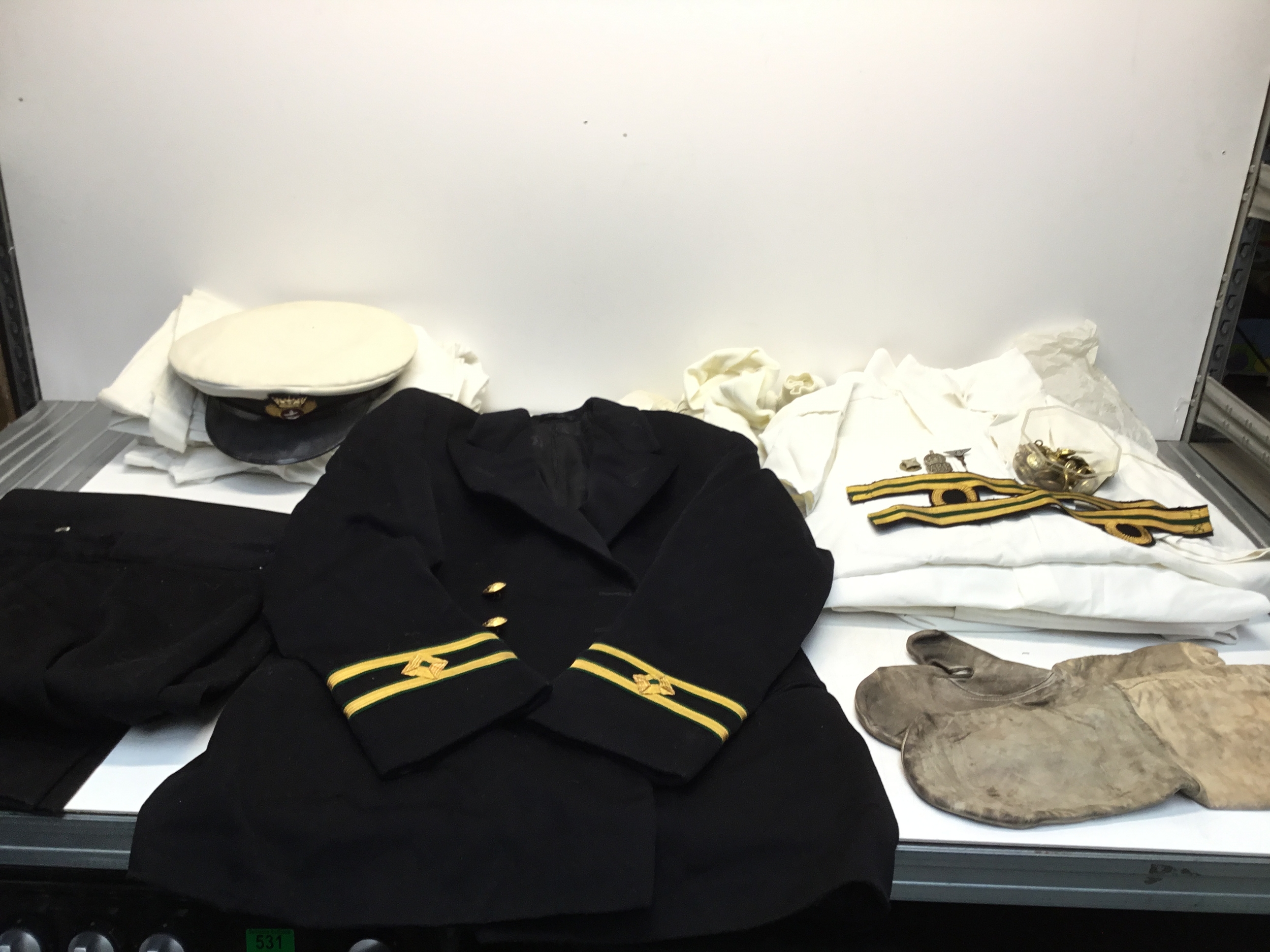 Naval officers uniform including jacket, shirts, socks and cap