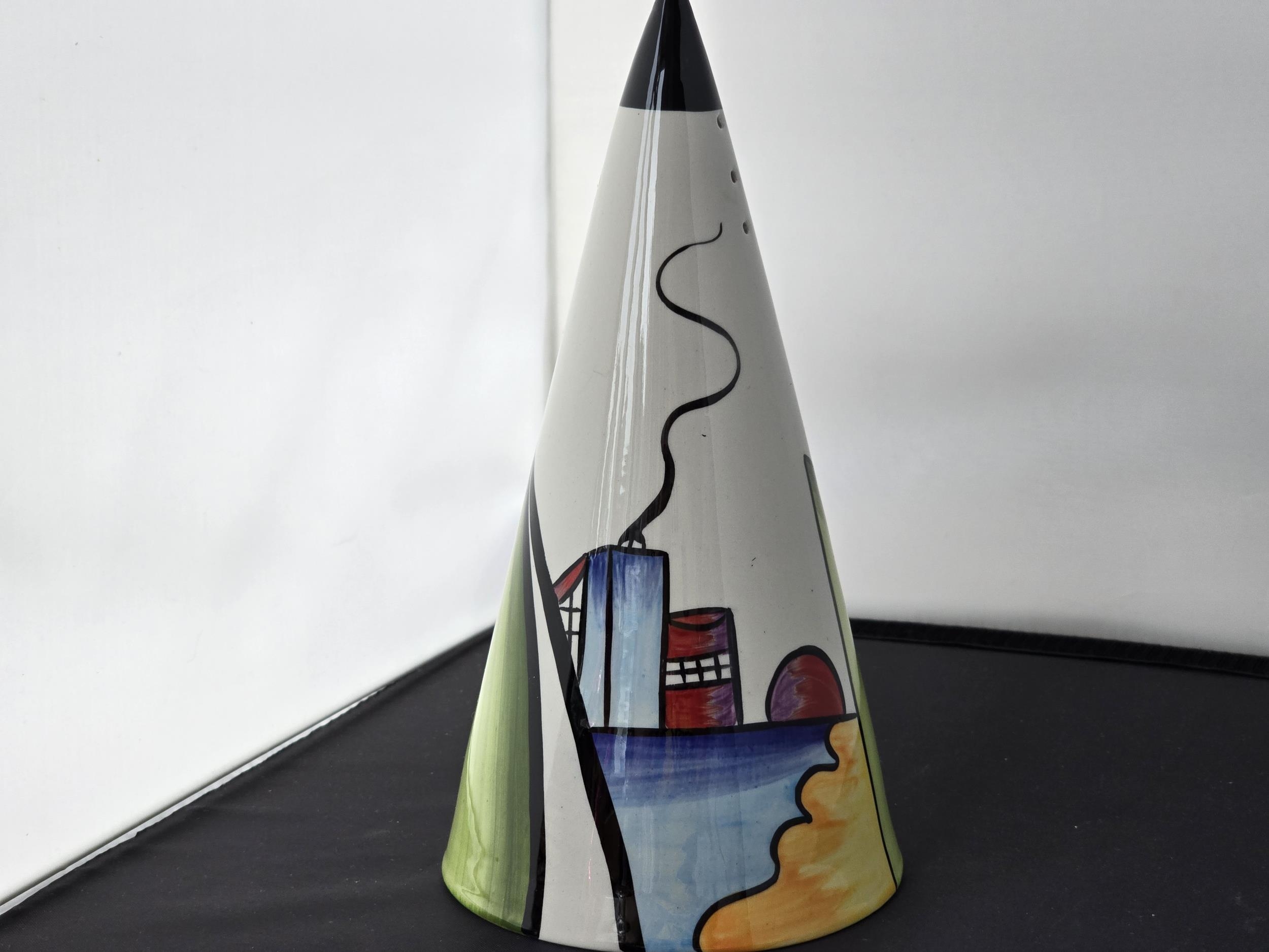 Lorna bailey Pottery- Rare Giant conical Sugar Sifter in Deco House design. signed on base, Handmade and painted in Stoke-on-trent. Excellent condition. 23.5 cms or over 9 inches tall
