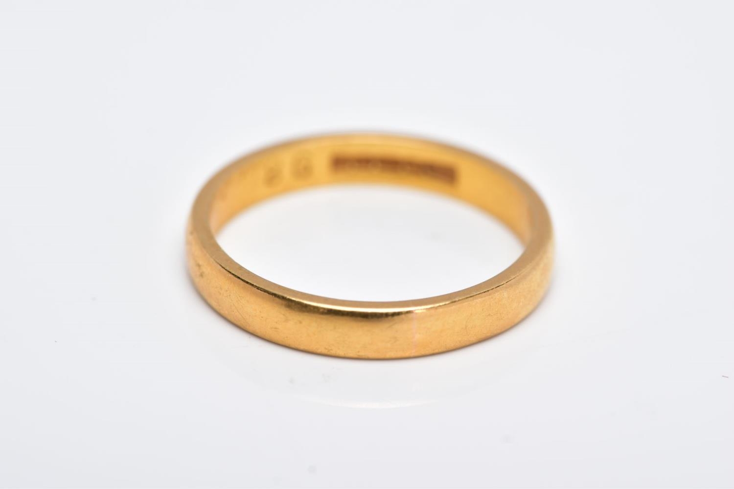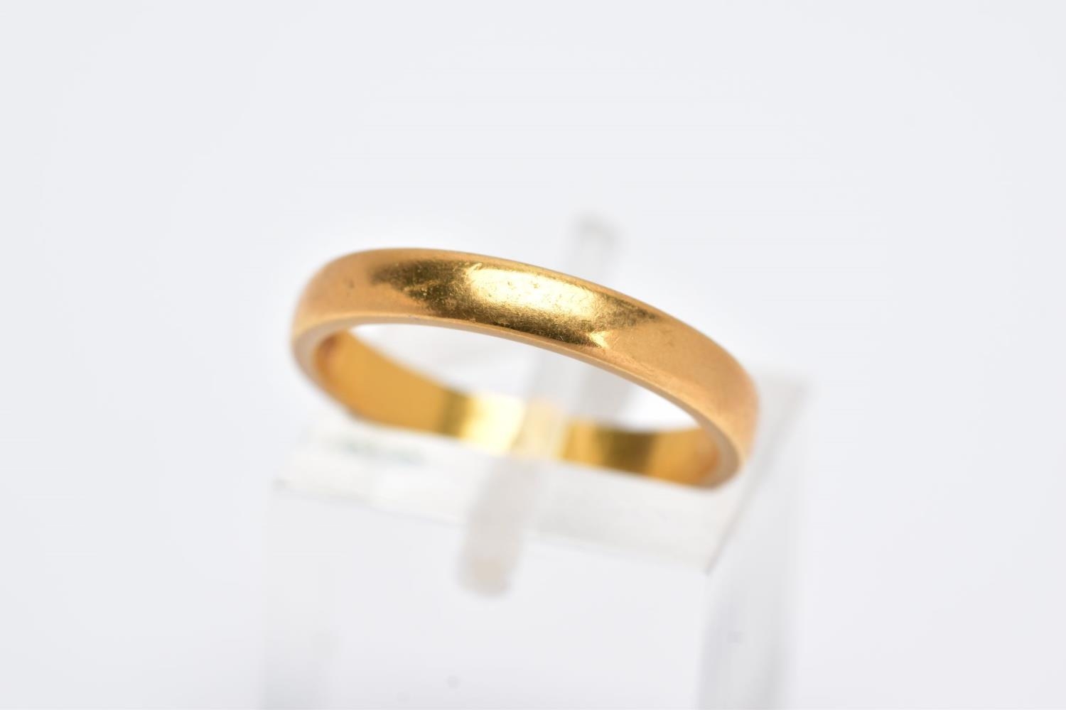 A 22CT GOLD WEDDING BAND, of a plain polished design, approximate width 3.0mm, hallmarked 22ct gold Birmingham, ring size L½, approximate gross weight 3.5 grams