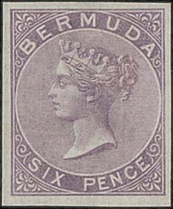 6d Dull Purple, imperforate plate proof on gummed Crown CC paper, scarce. Photo on Page 18.