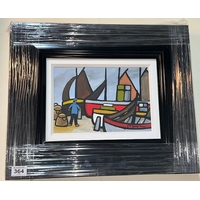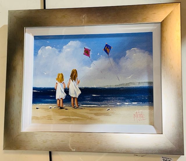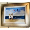 Framed Michelle Carlin Oil on Board - Sisters Flying Kites - 22x18"