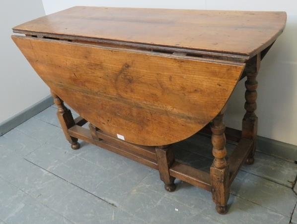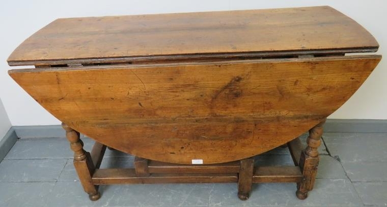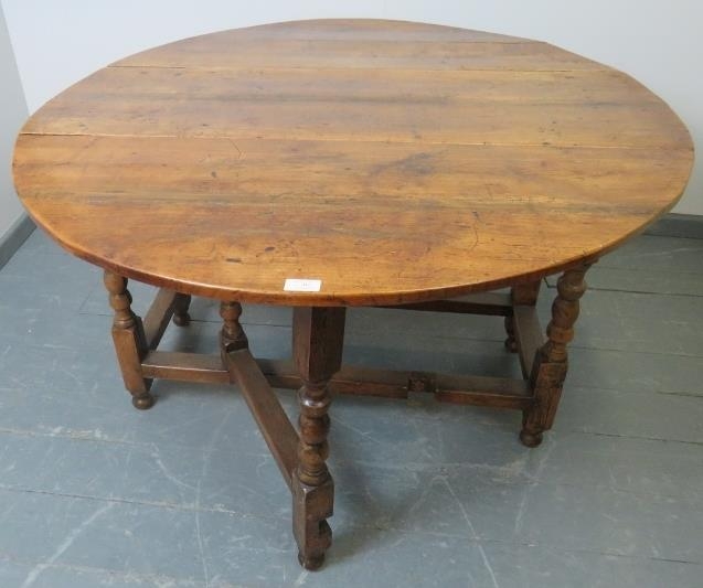 An 18th century fruitwood oval gateleg table of excellent colour, on turned supports.