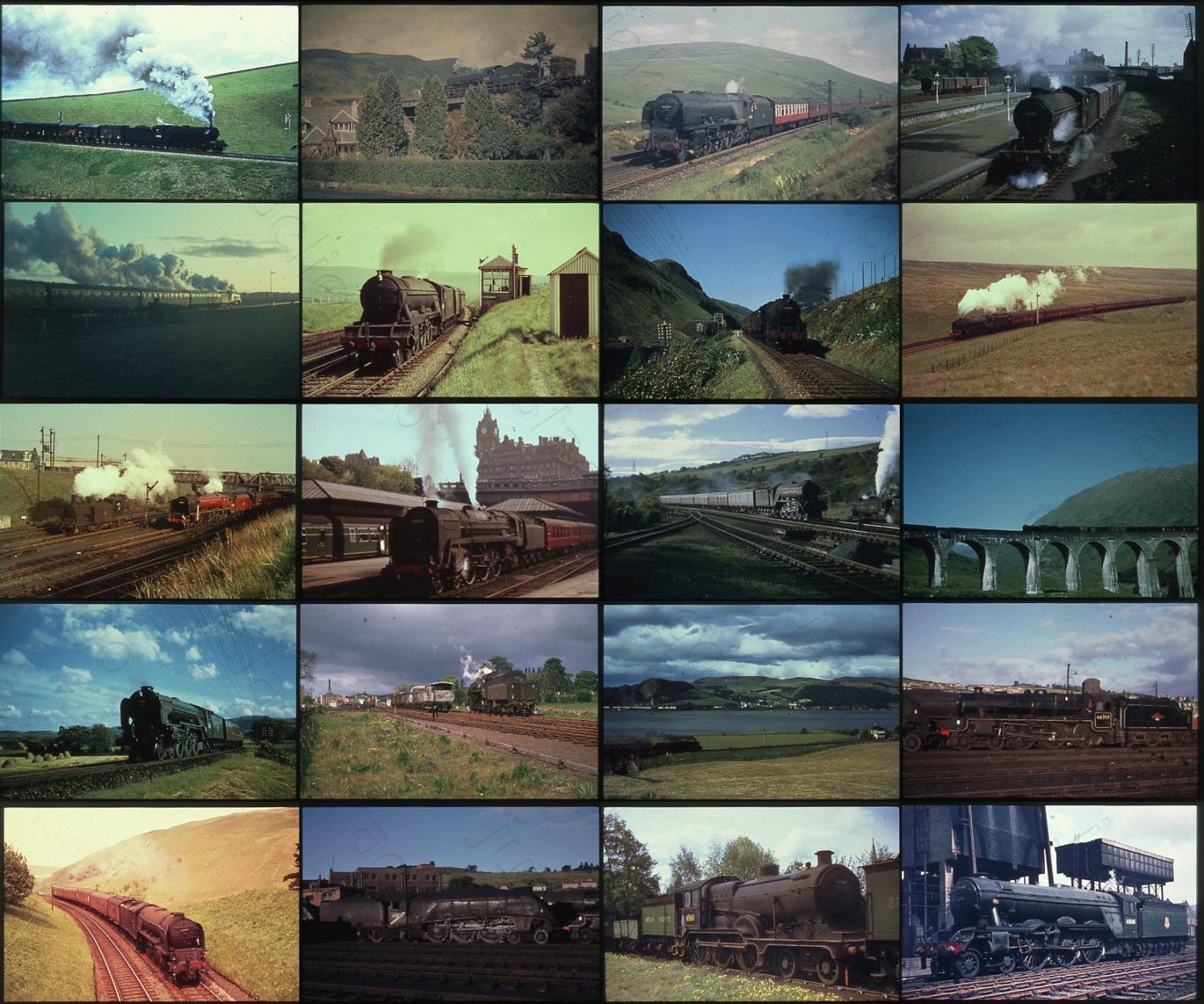 Railway. BR. Steam. A small selection of "Colour Rail" duplicate, 35mm colour slides. There are approx. 54 slides with some minor duplication. The slides are all BR (Sc) and most catalogue numbers are <1000. Caption list included, no copyright. Sample illustrated.