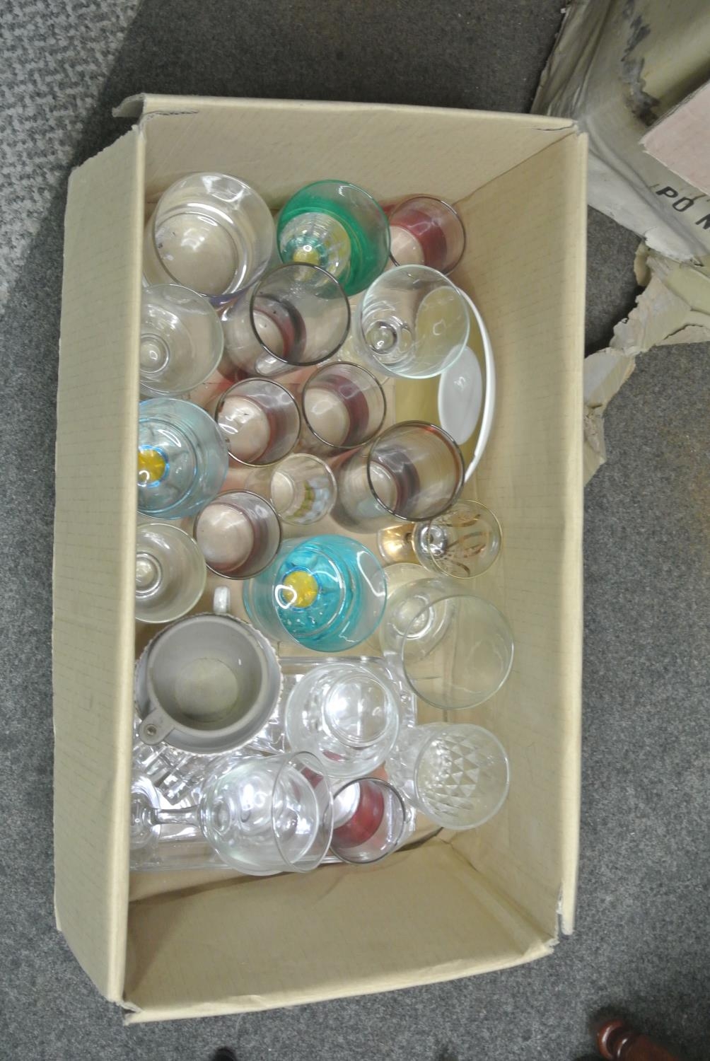 A box of assorted glassware