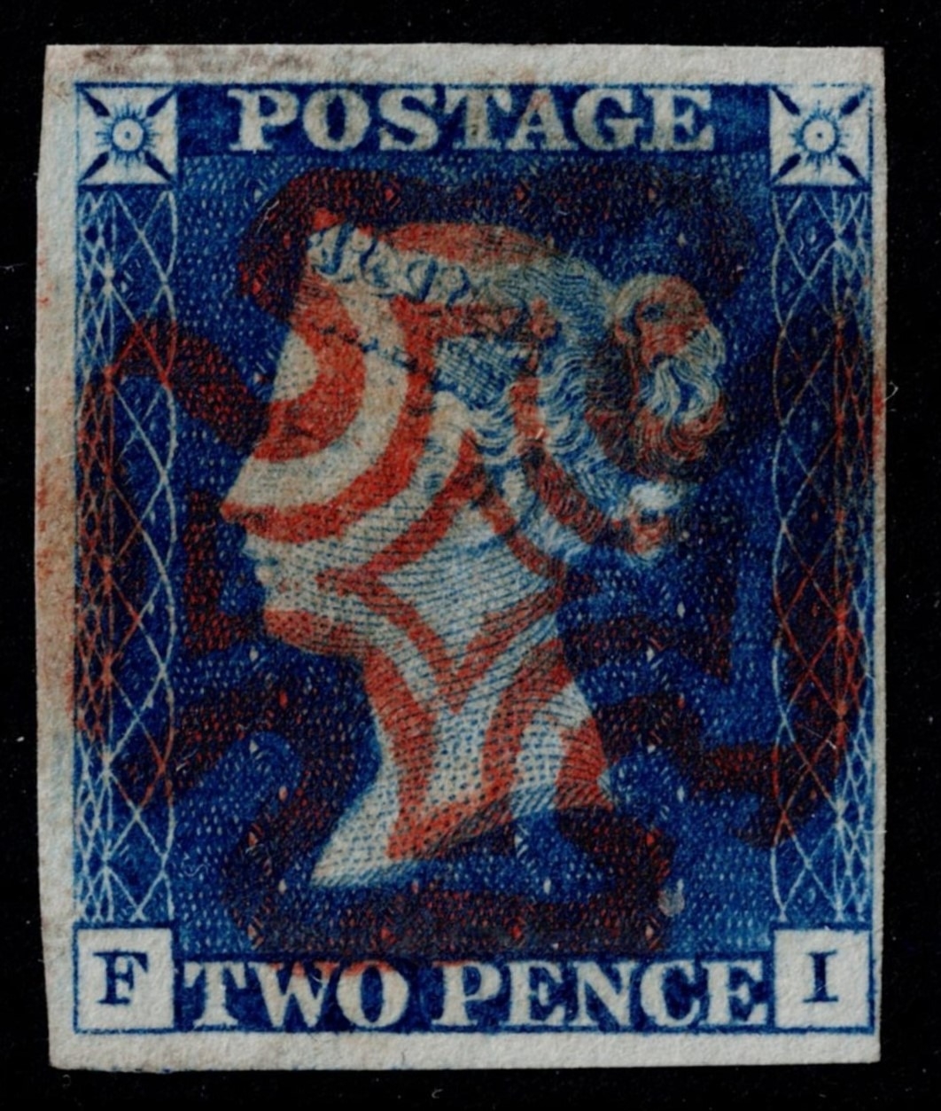 GB 1840 2d blue plate 1 FI superb used 4m with perfect upright red maltese cross sg5 Spec.DS5ua Cat. £1250