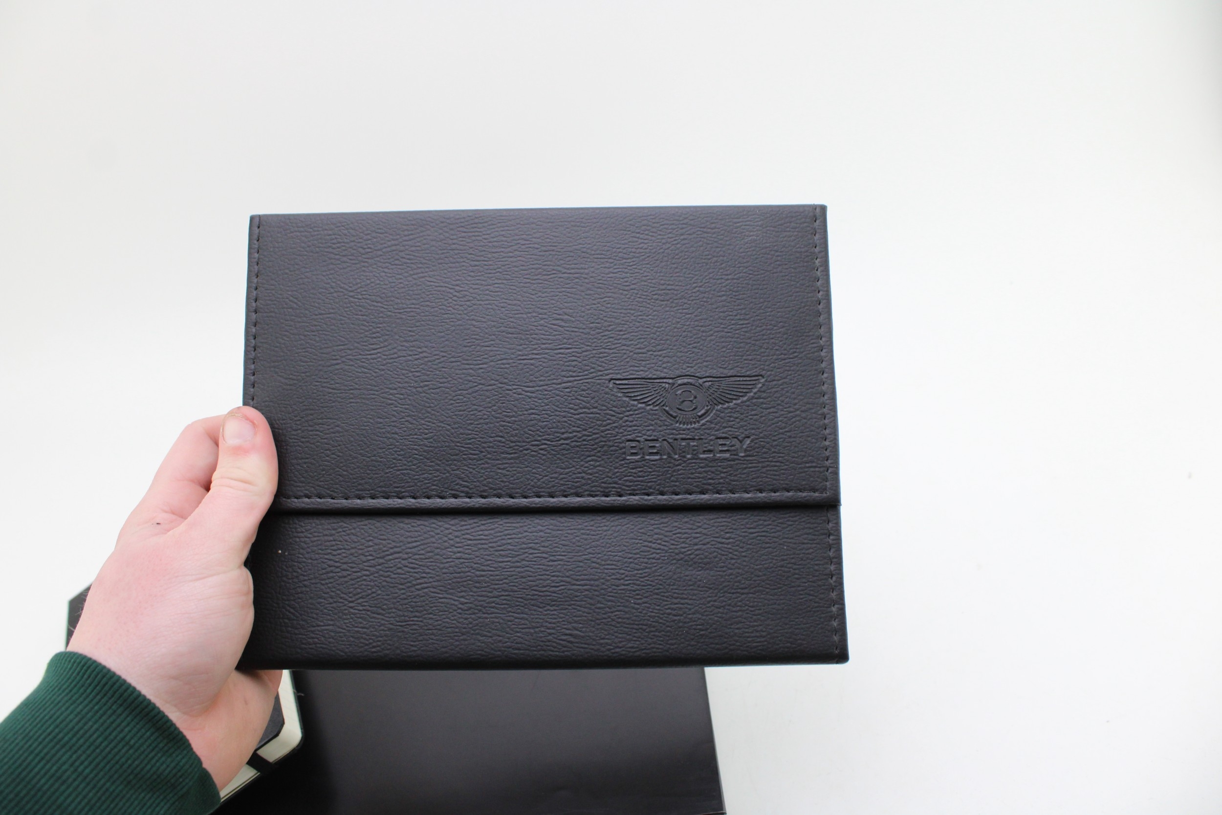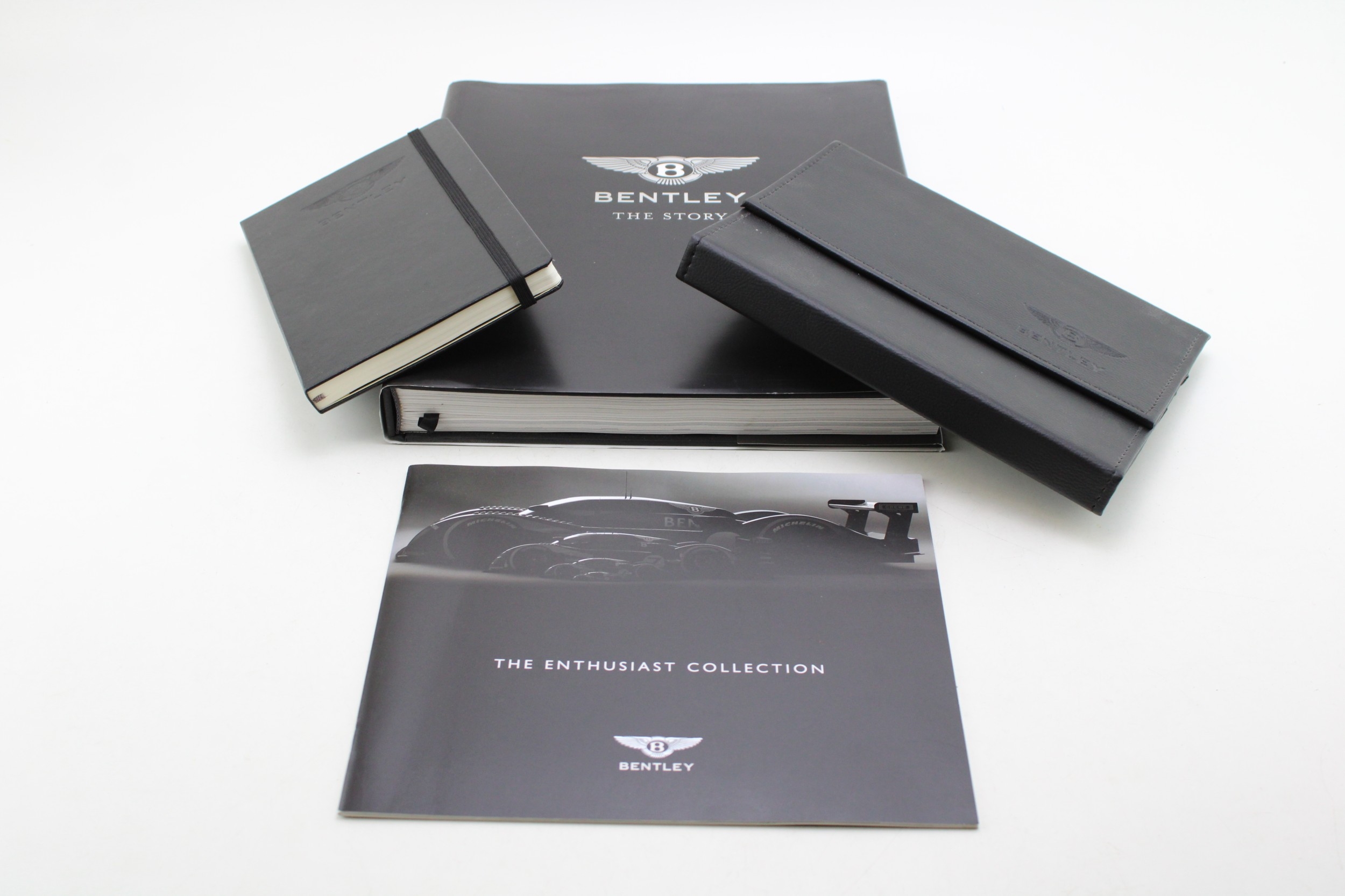 Bentley Moleskine lined Notepad with black leather branded cover, Bentley, The Story hardcover book, and The Bentley Enthusiast Collection booklet (4).