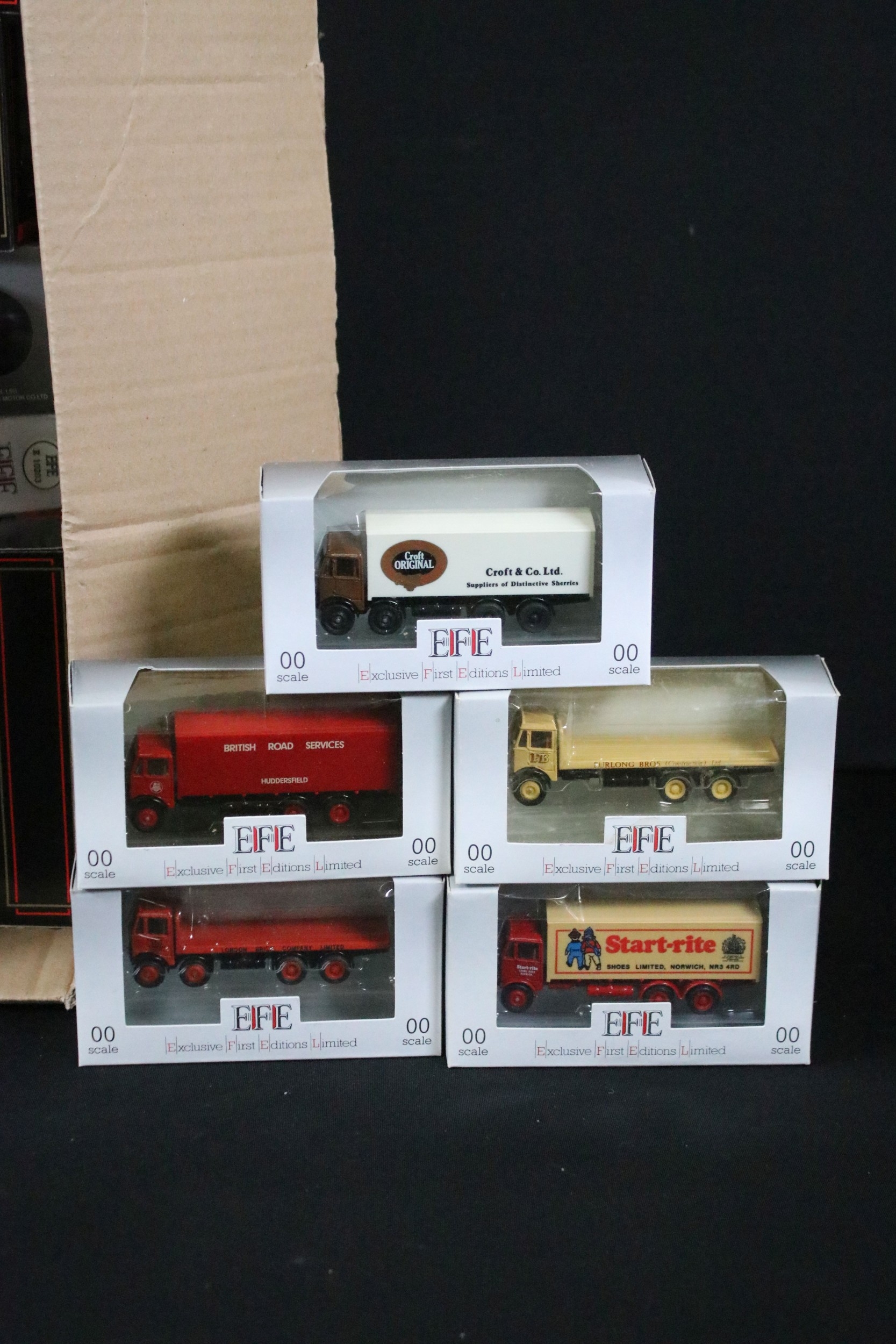 38 Boxed EFE Exclusive First Editions diecast model buses and commercials diecast models, together with 2 x boxed / cased Corgi Original Omnibus diecast model buses, all diecast ex, boxes / cases vg overall