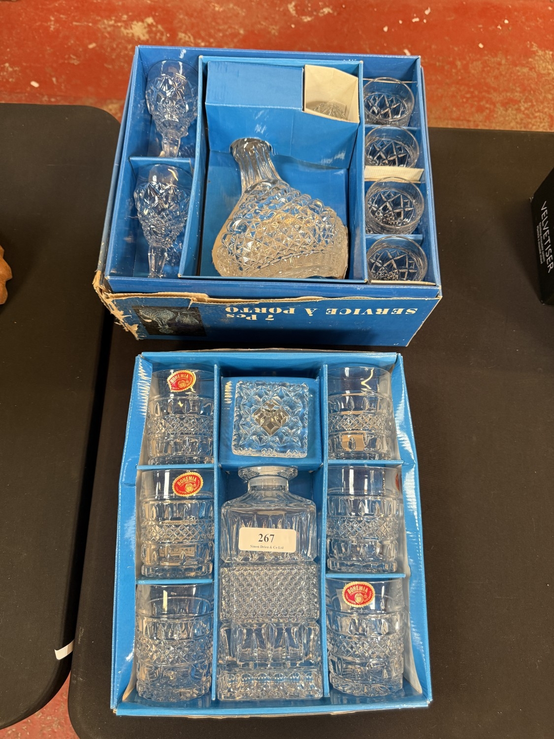 Two Bohemia lead crystal decanter and drinking glass sets