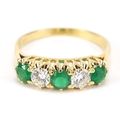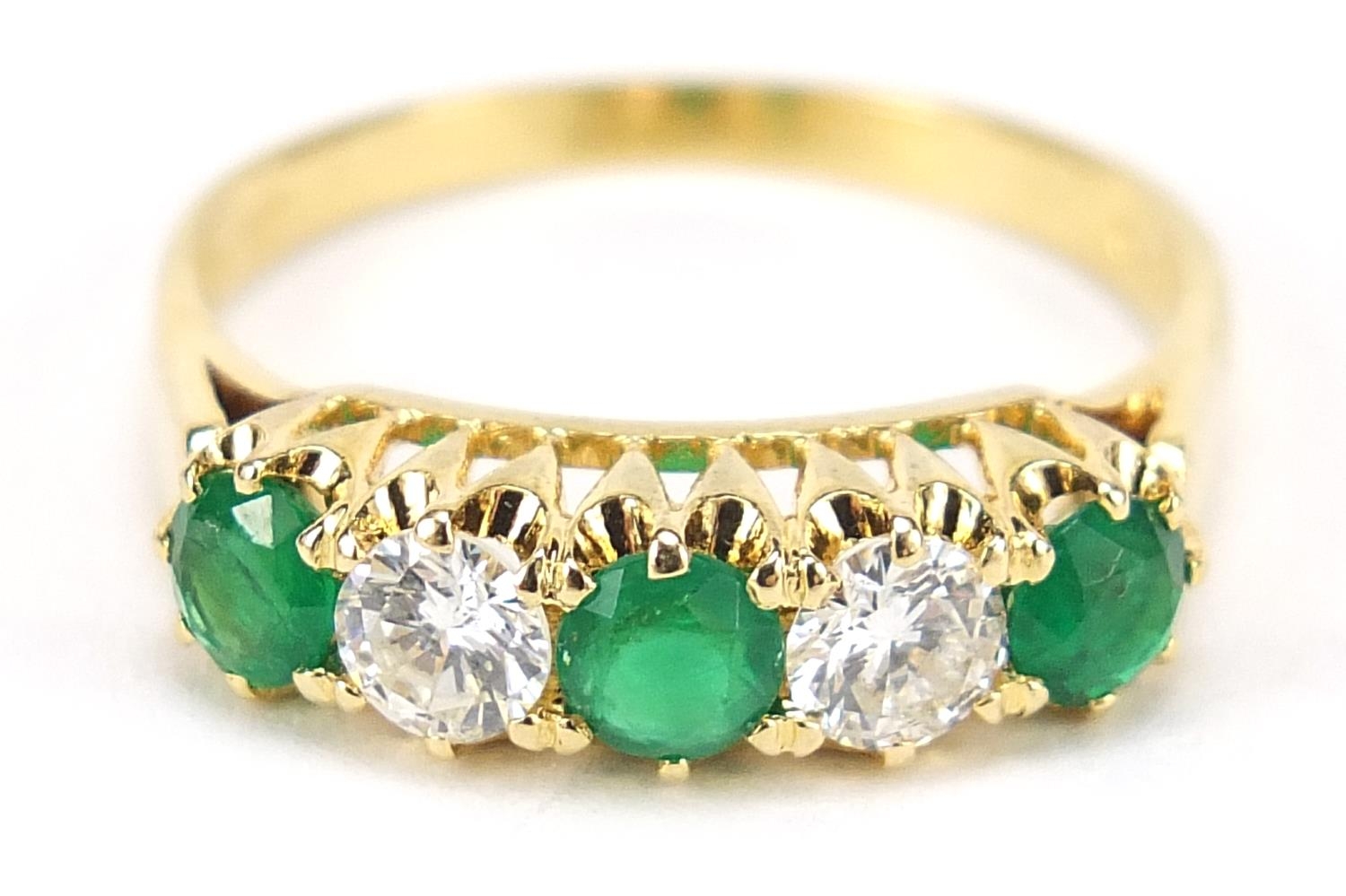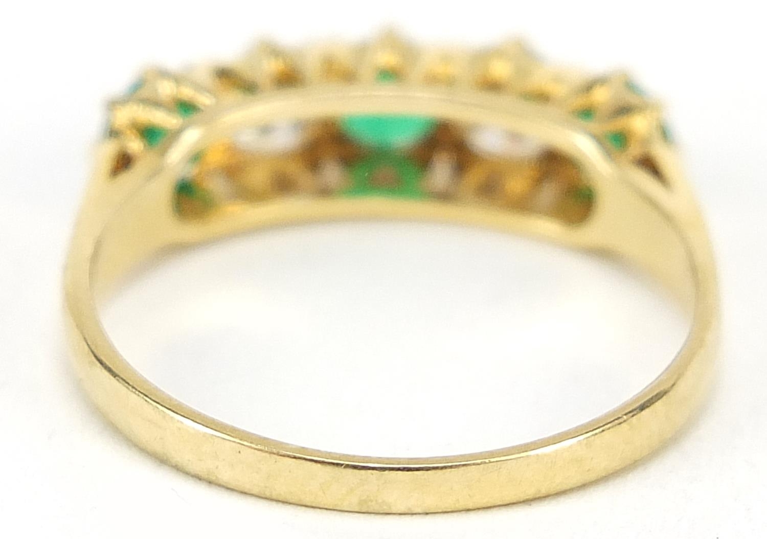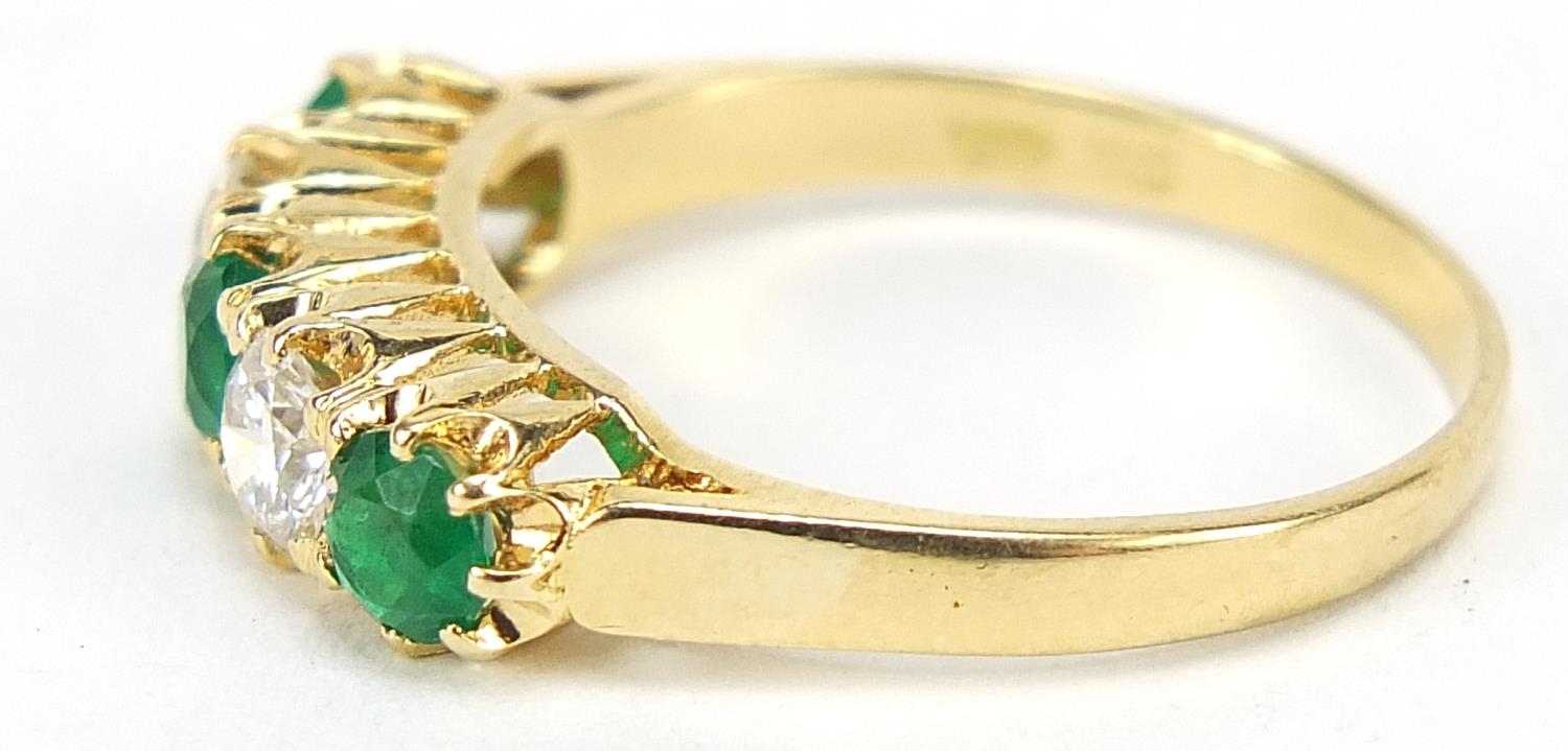 18ct gold emerald and diamond five stone ring, size O, 3.0g