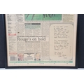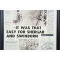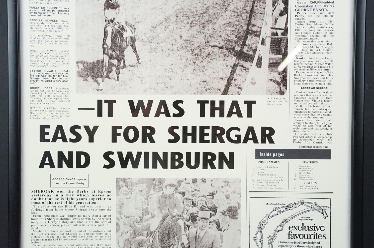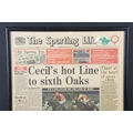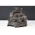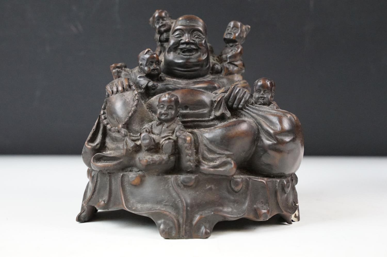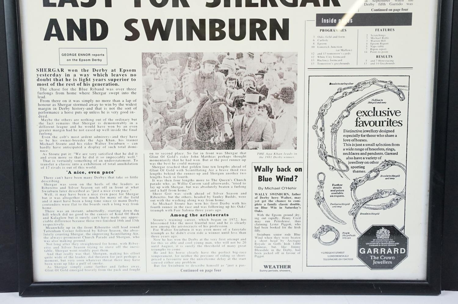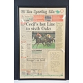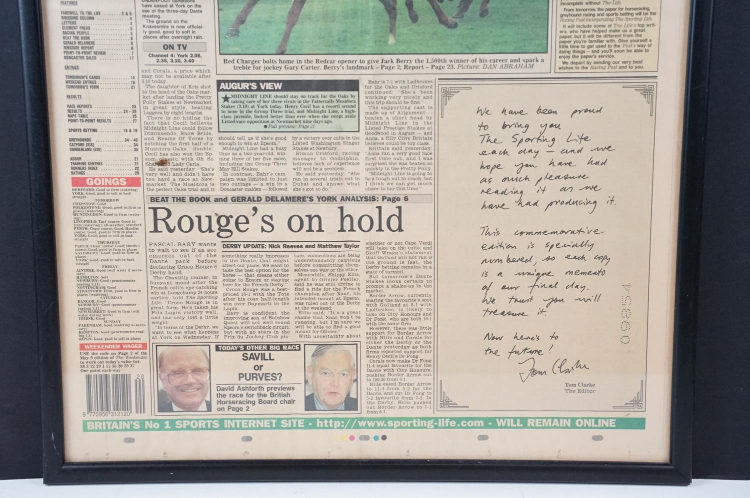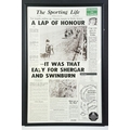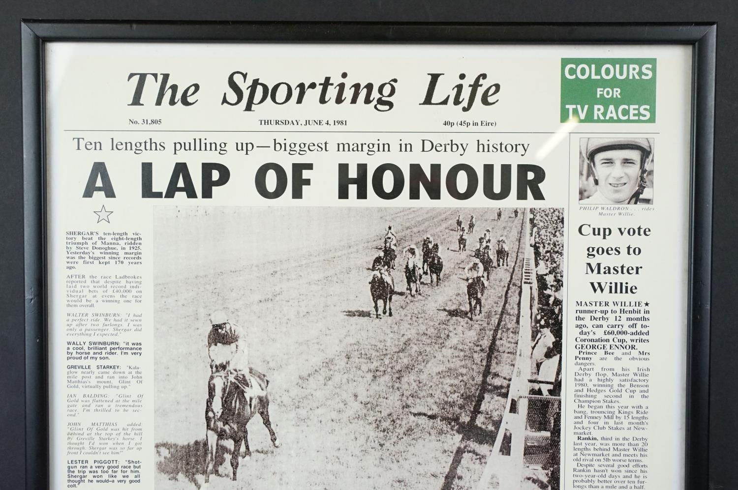 A vintage hand carved ebony letter opener together with a tribal figure and resin buddah with two framed The Sporting Life prints.