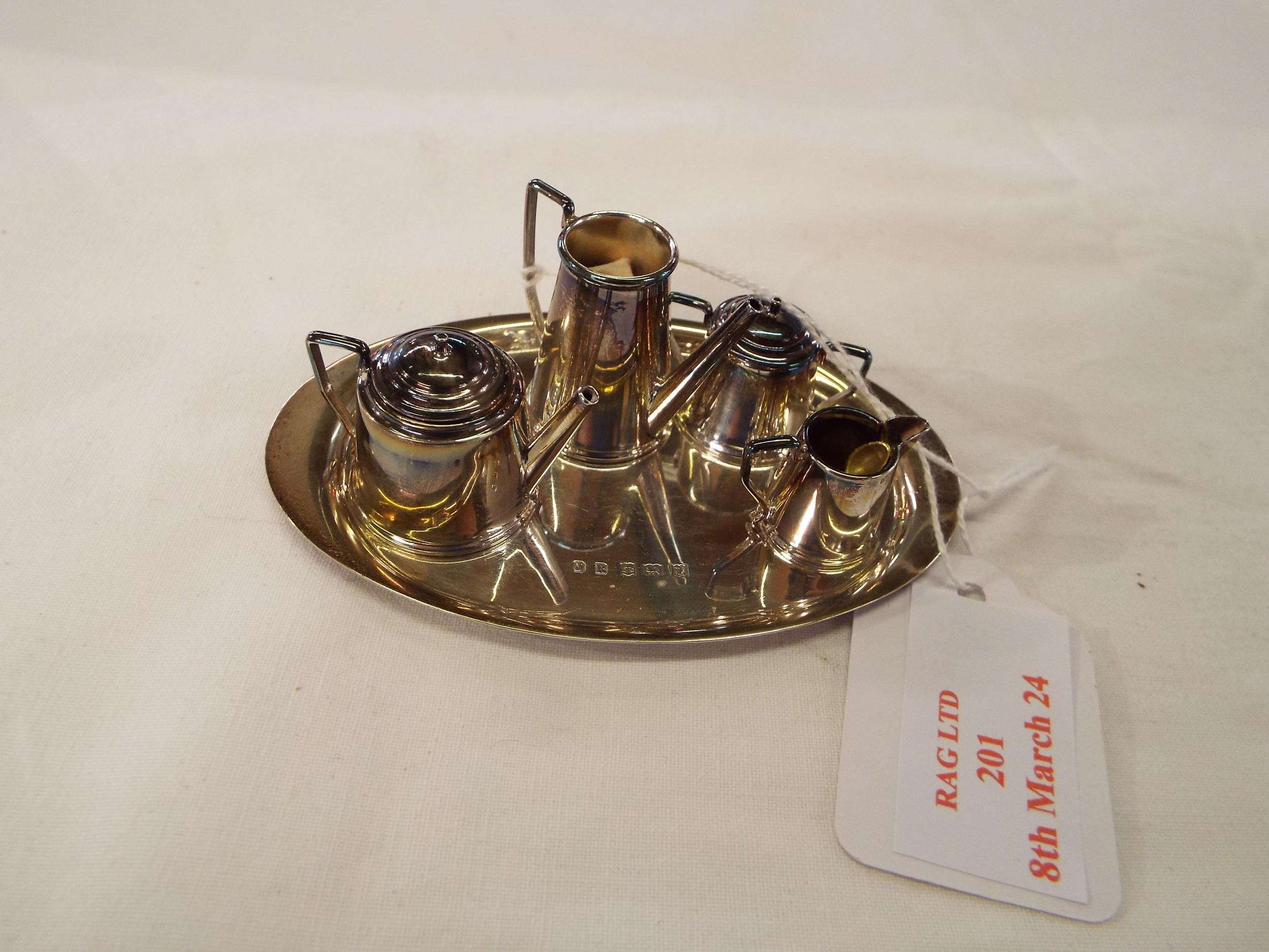 A Birmingham 1948 silver miniature dolls house tea set