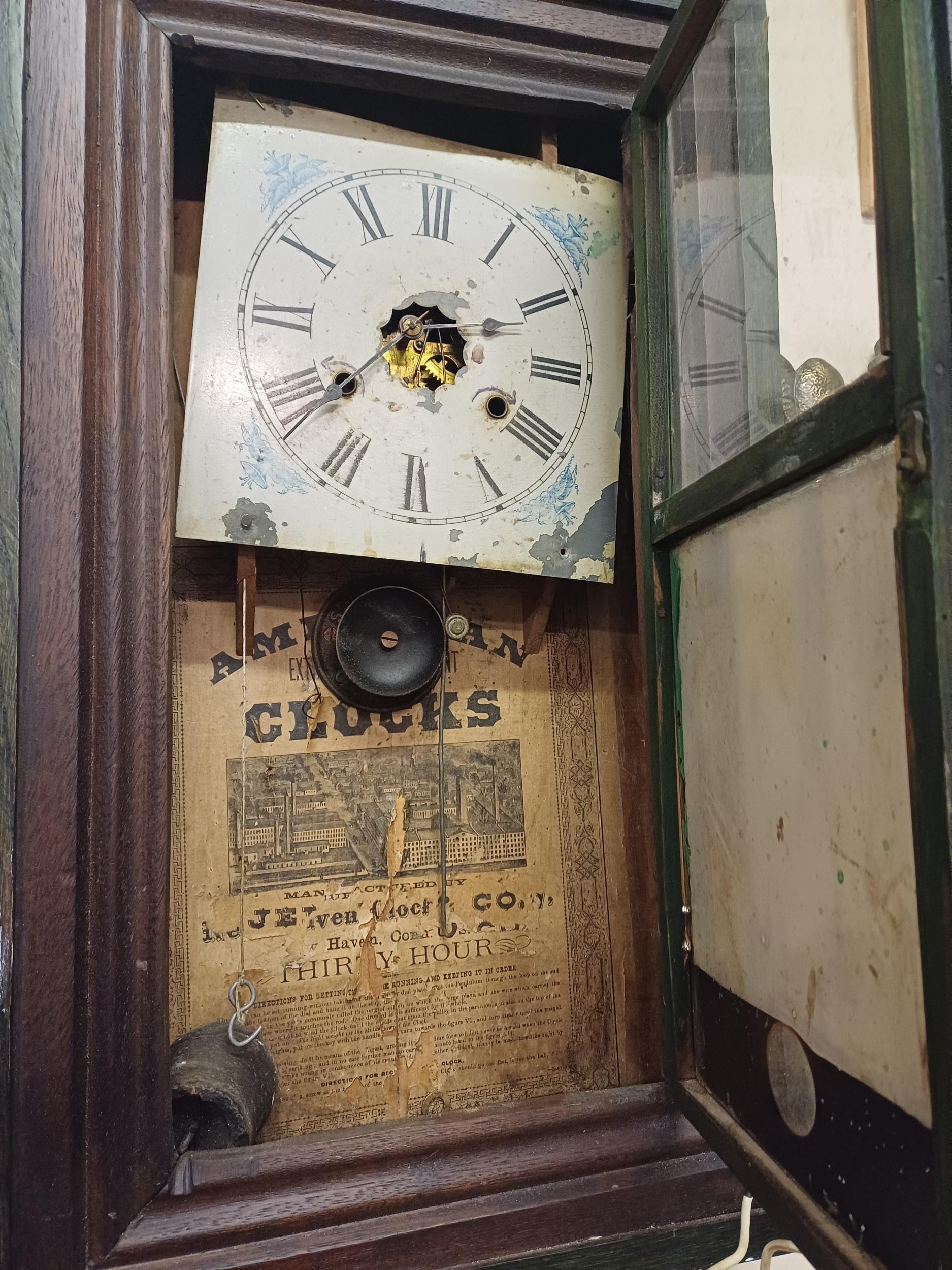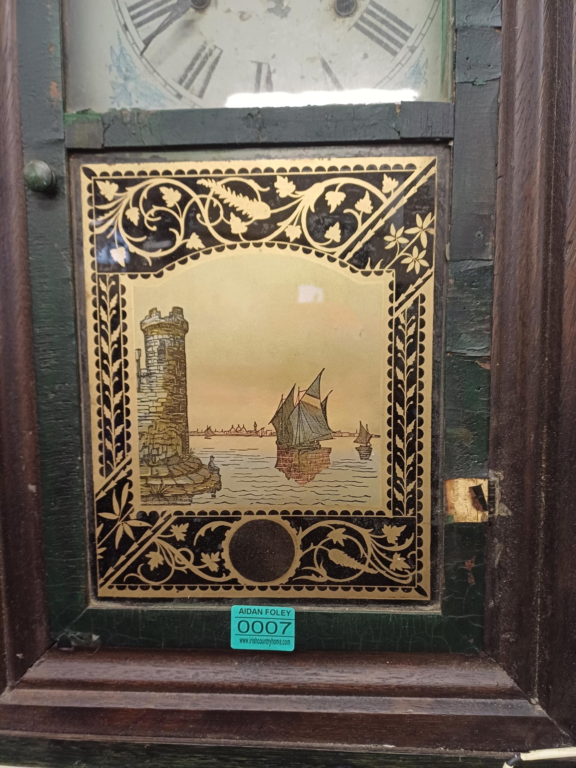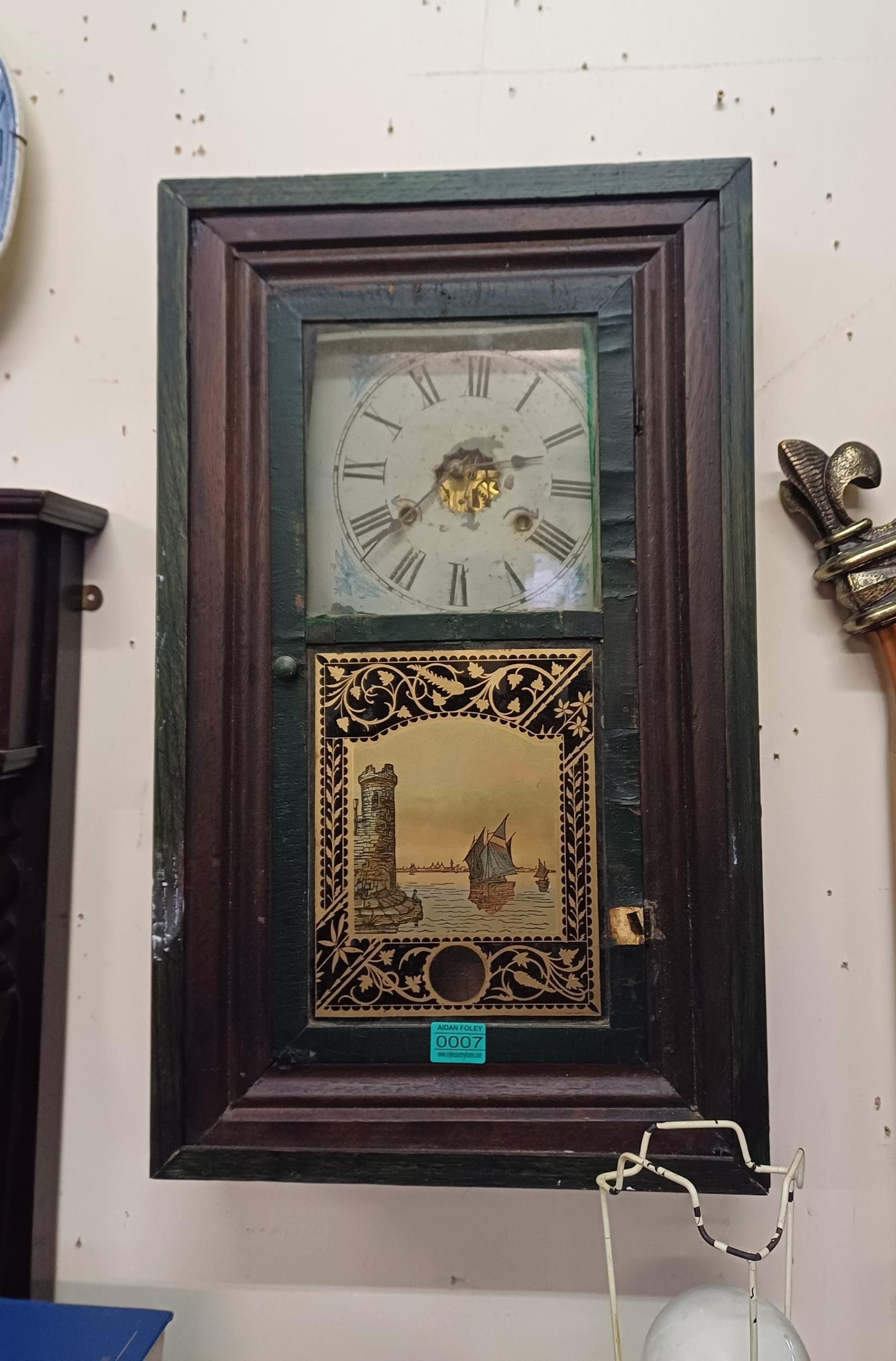 19th Century American Ogee Wall Clock with Painted Glass Panel, possibly Blackrock Castle