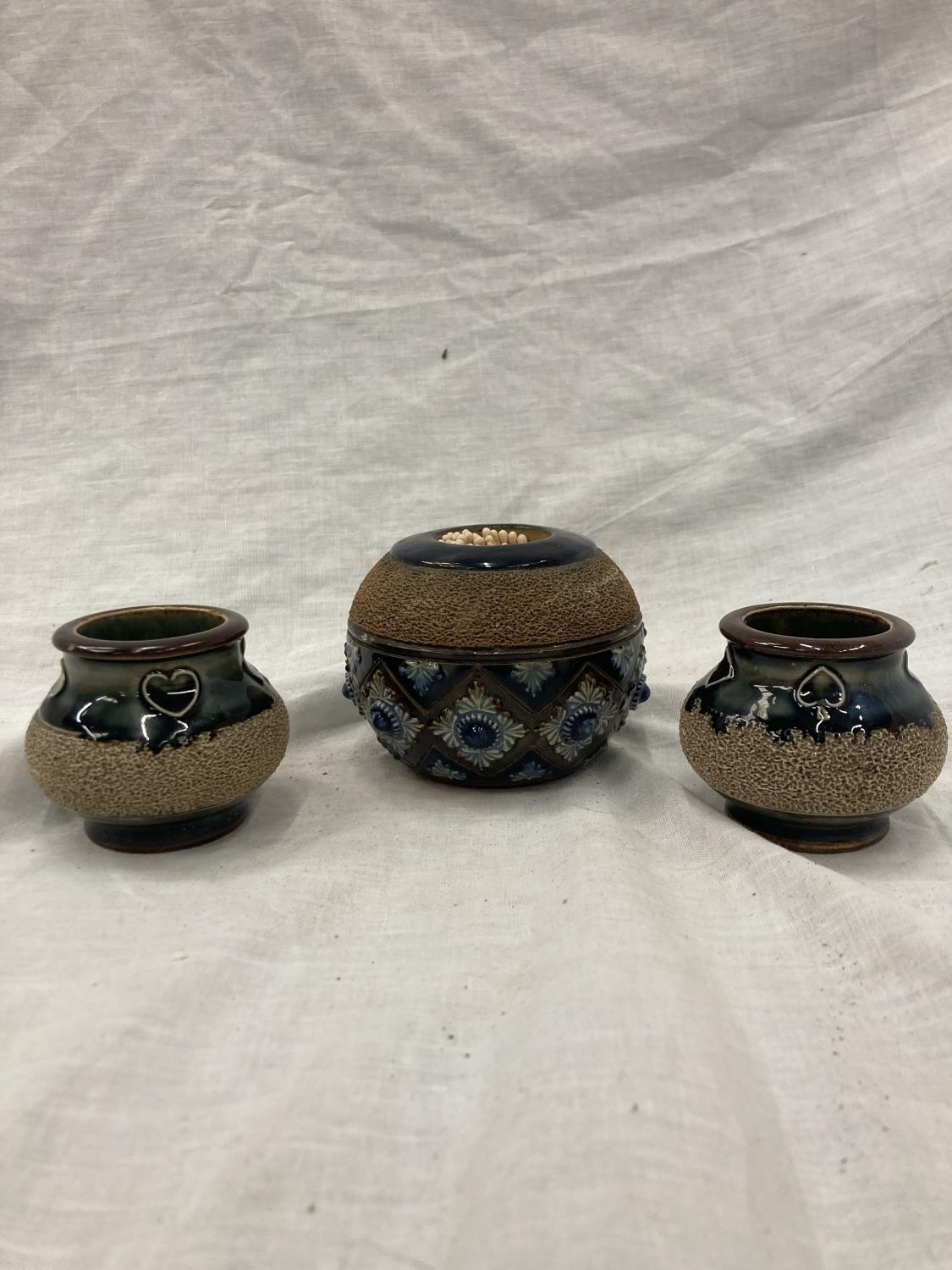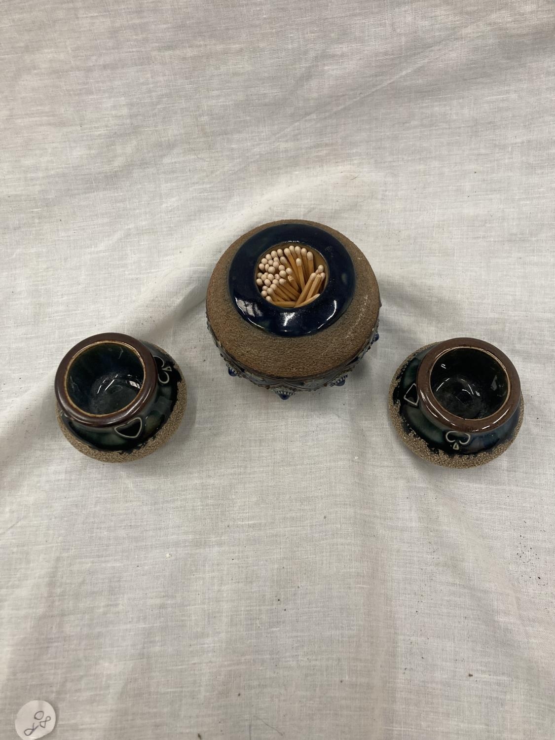 A ROYAL DOULTON MATCH STRIKER AND TWO SMALLER ROYAL DOULTON EARLY 20TH CENTURY MATCH STRIKERS