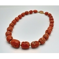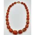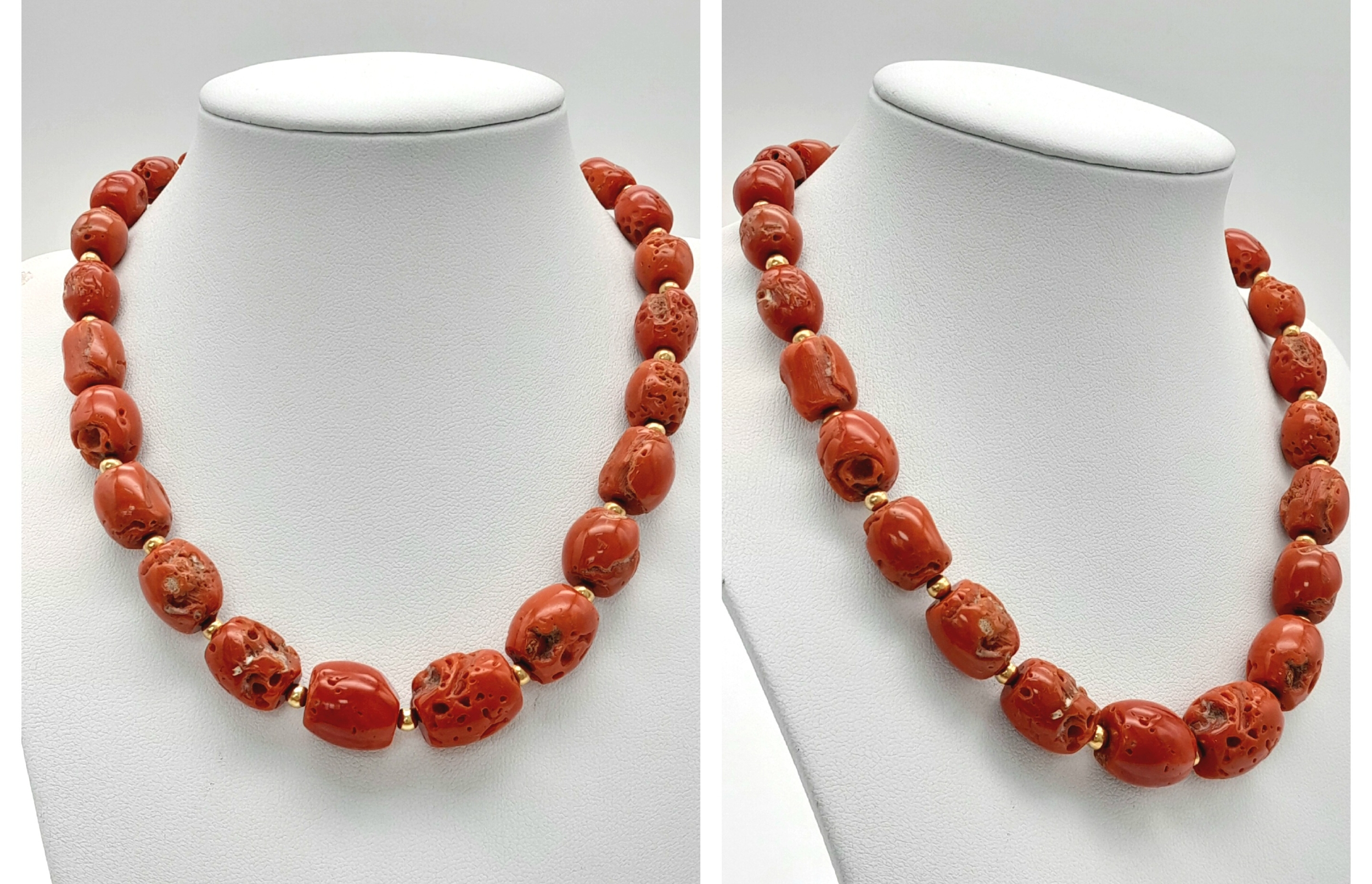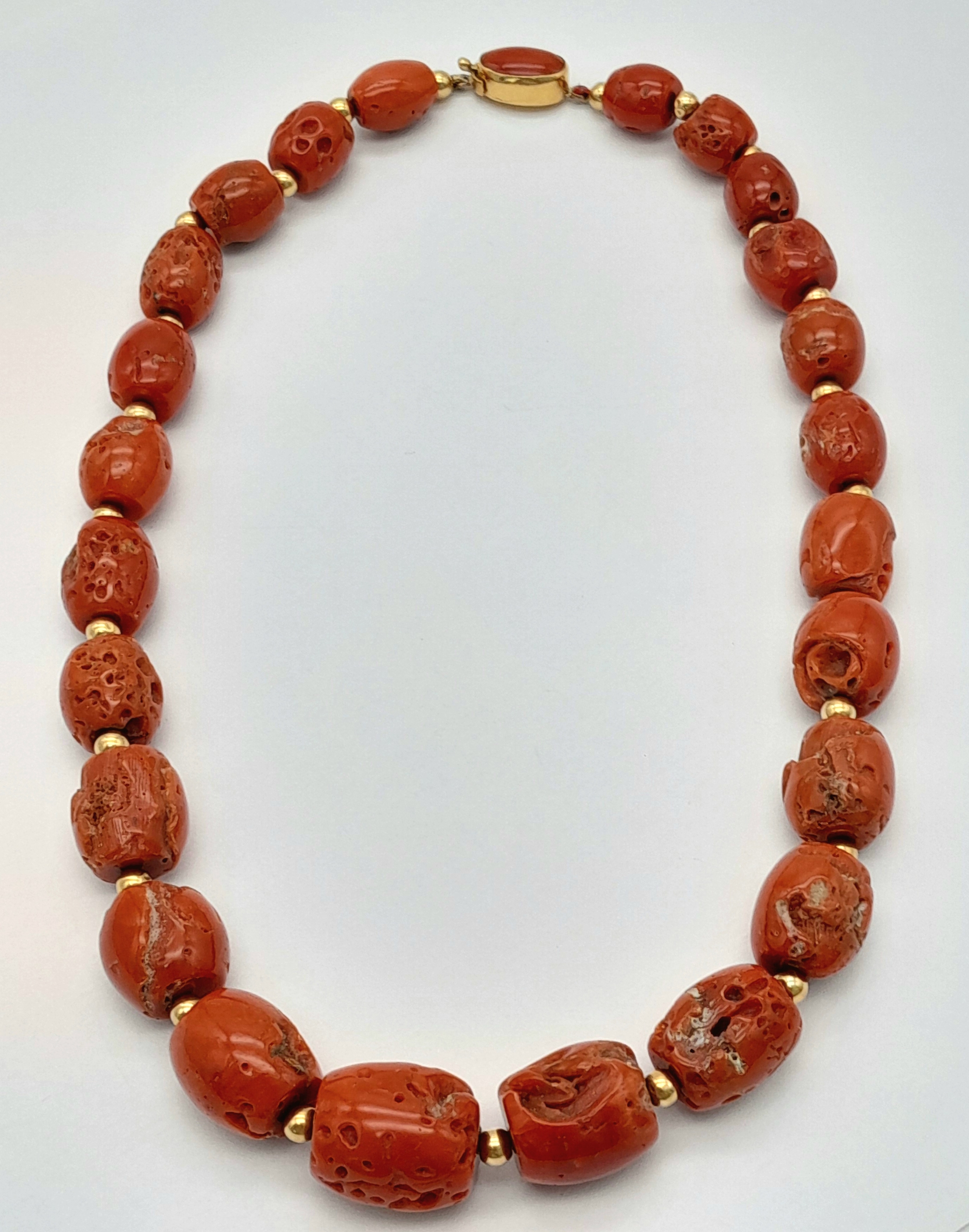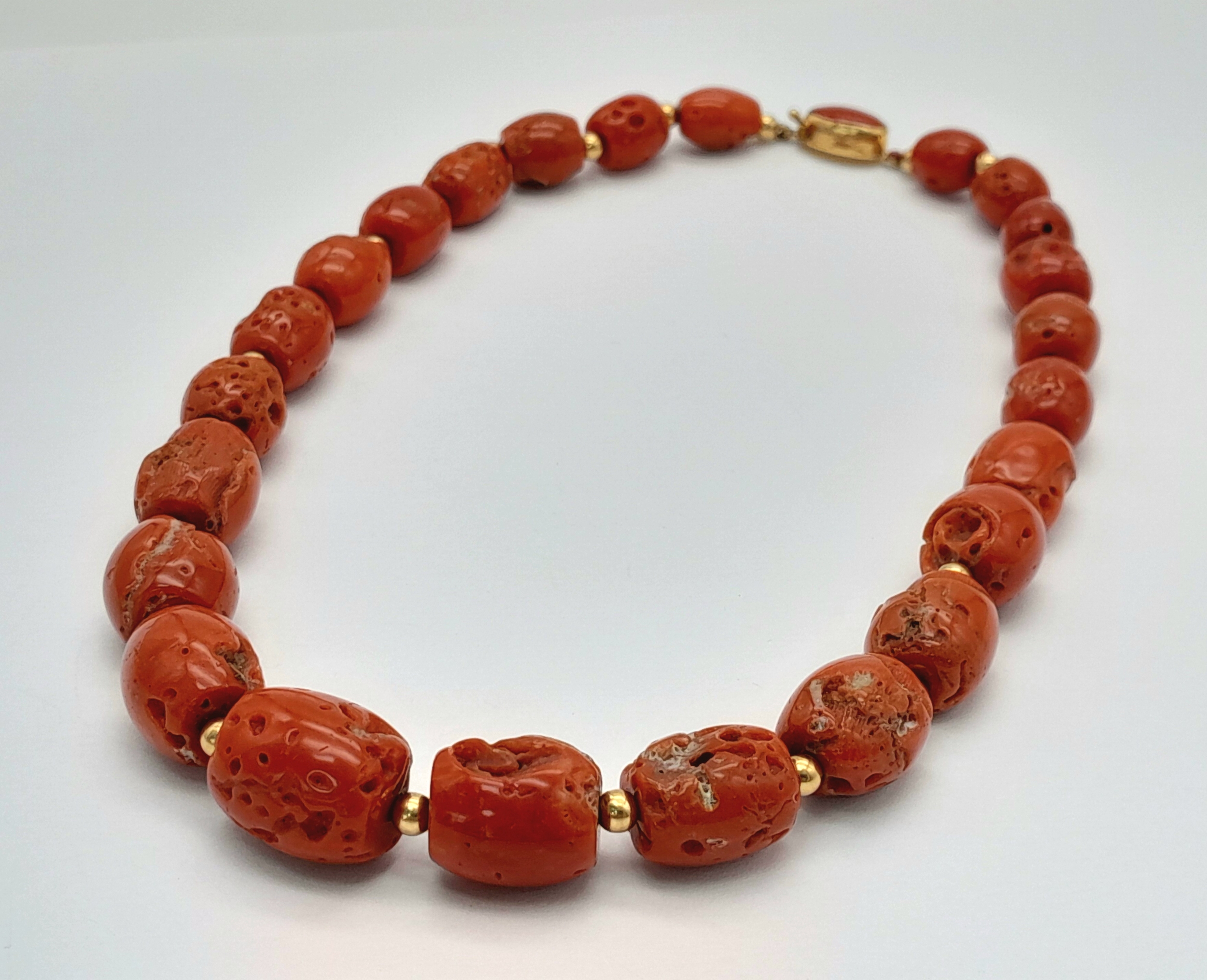 A Vintage 18K Gold and Red Coral Necklace. Beautiful, natural graduating red coral rondelles with gold spacers. 40cm. 68g.