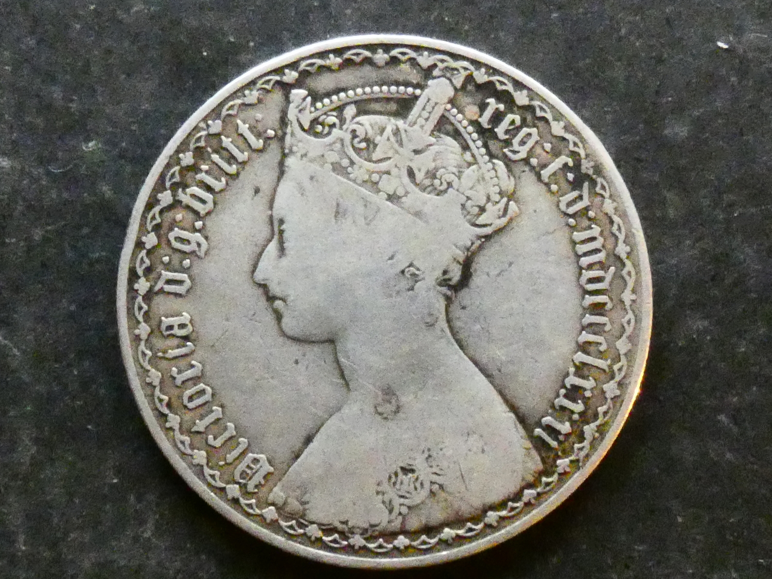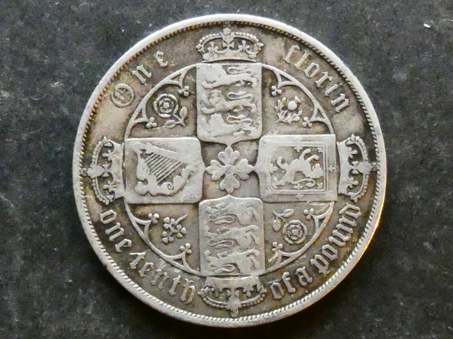 COIN. United Kingdom, Victoria (1837-1901), silver "gothic" Florin, mdccclxxxi (1881), S-3900, VG