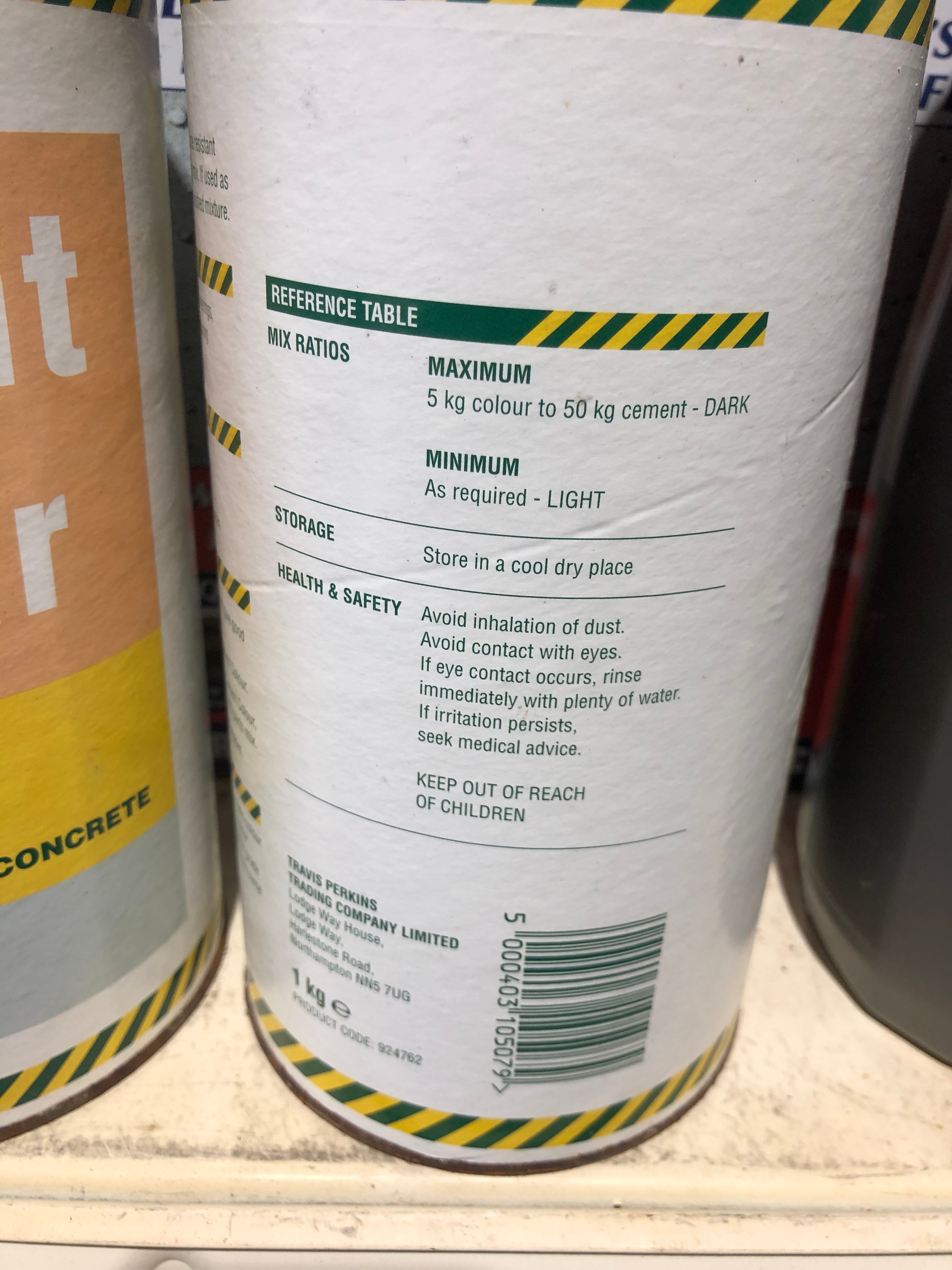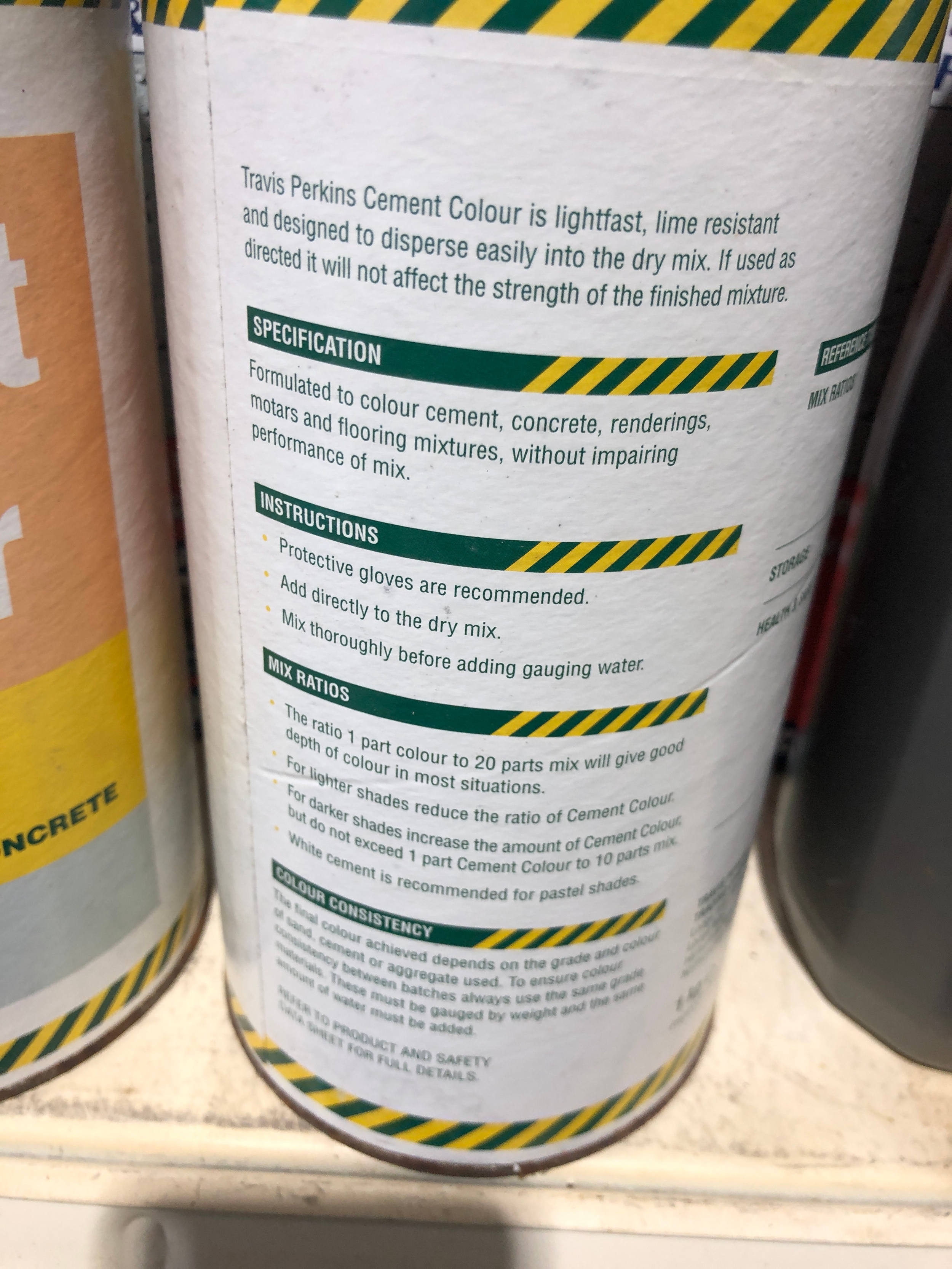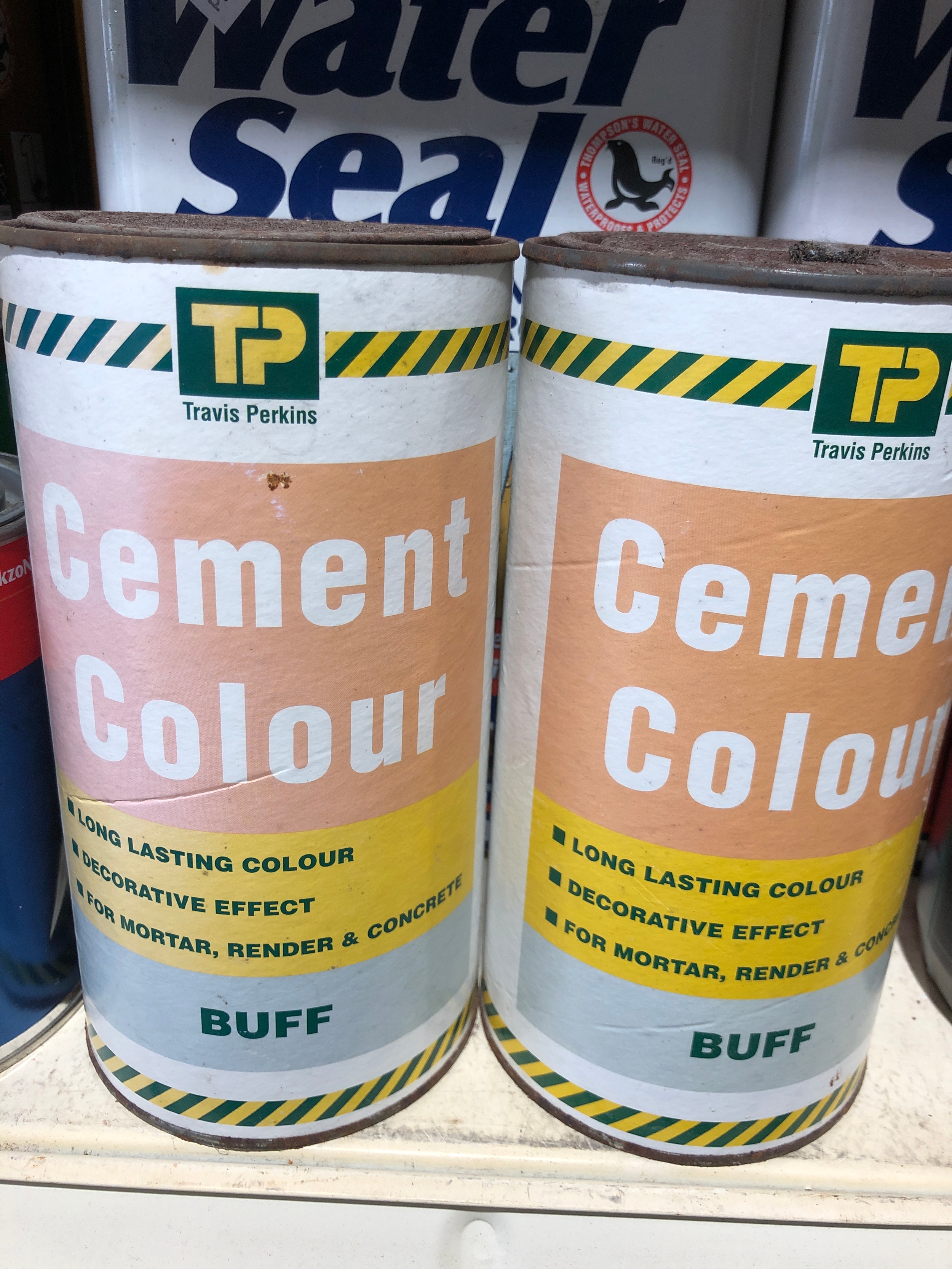 2 tins of Travis Perkins buff cement colour. Full each 1kg