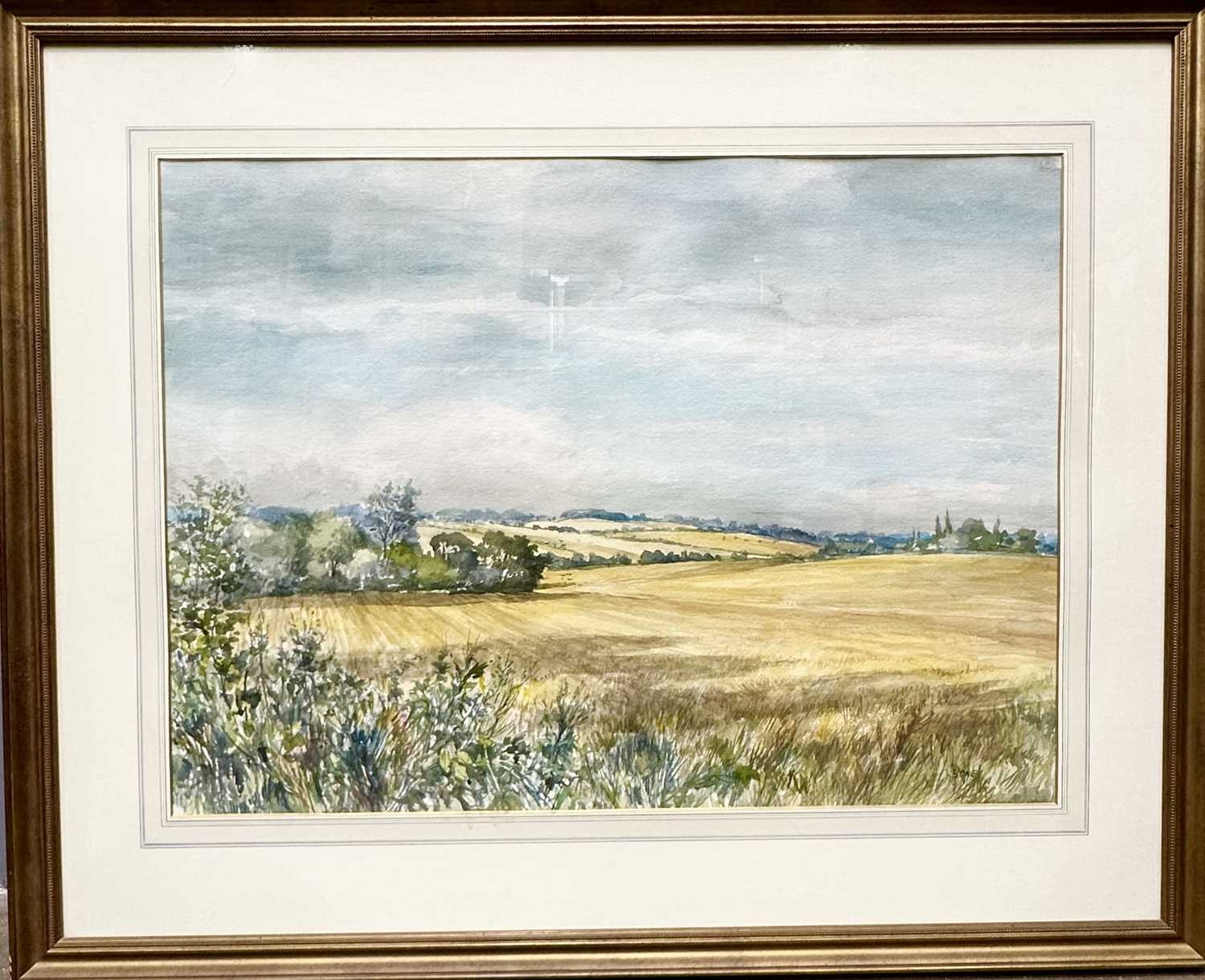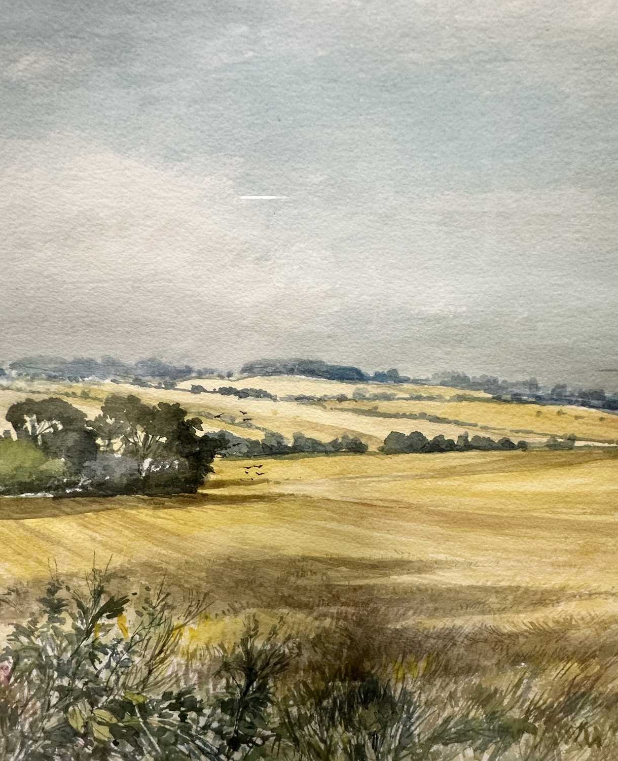 Charles Bone (British, 1926), an expansive rolling landscape with meadows, signed l.r., watercolour, 55 by 75cm, framed (1)