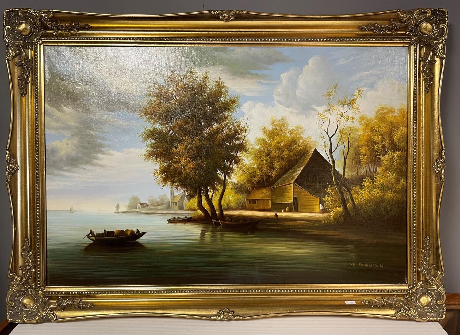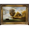 Gilt Framed Oil on Canvas River Landscape 105cm long x 75cm high